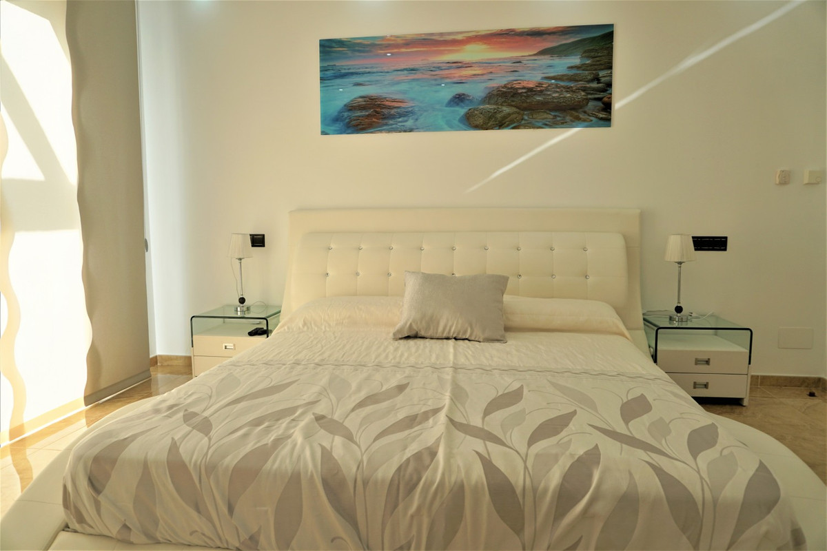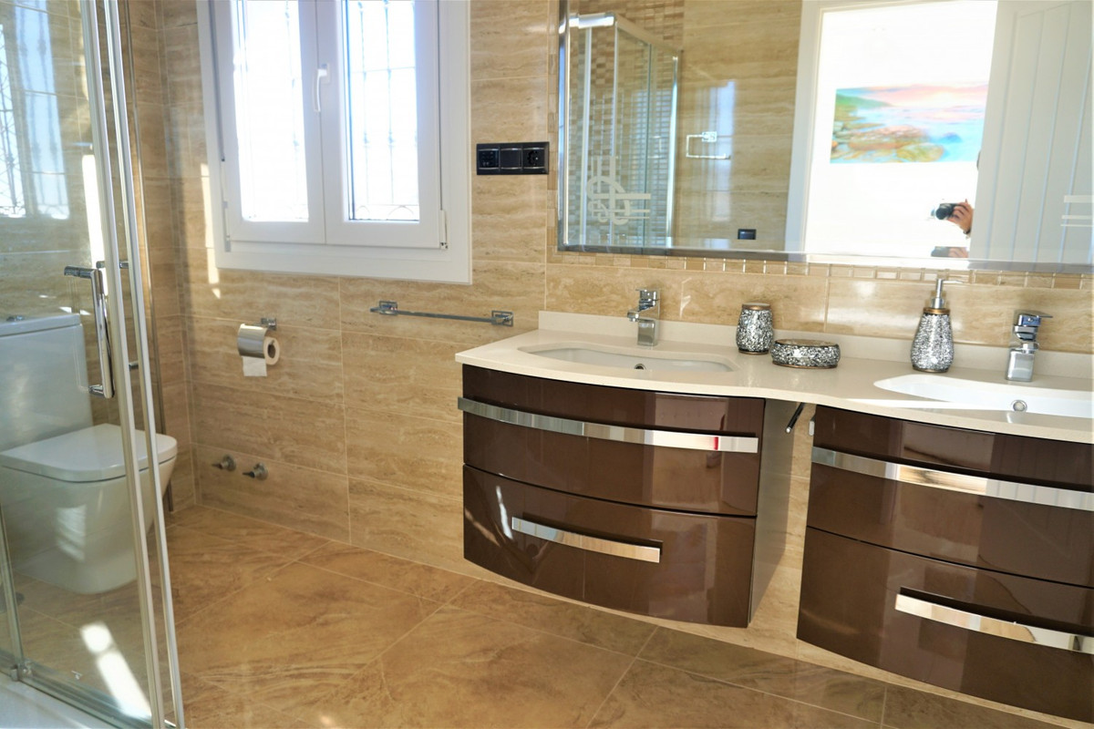 This Villa is situated in Viña Málaga. It is in a very quiet area, but it is close to the city center, shops, pharmacies, school and the beach. It is a very modern Villa that was built in 2014 and it ́s in perfect condition. It consists of 4 floors. On the ground floor we find a garage of about 200m2, where you can fit between 4 - 5 cars. There is also a small guest toilet and a storage room. It also has a worktop with a sink. Going up to the next floor we find the fully equipped kitchen, from where you have access to a terrace. On the same floor there is a bathroom with a shower. As well as one of the bedrooms, with a built-in wardrobe. There is also the dining room and the living room which opens onto the terrace and the swimming pool with a large window. This floor has underfloor heating. Upstairs is the master bedroom, which includes a dressing room and a large bathroom. There is also another bedroom which includes a built-in wardrobe. This floor has access to the roof terrace of the house. We are pleased to be able to present this dream property to you soon, either personally or via virtual viewing. Because this world, it is unique - just like our Axarquía. In Andalusia. On the Costa del Sol. Here, on the sunny side of life...
