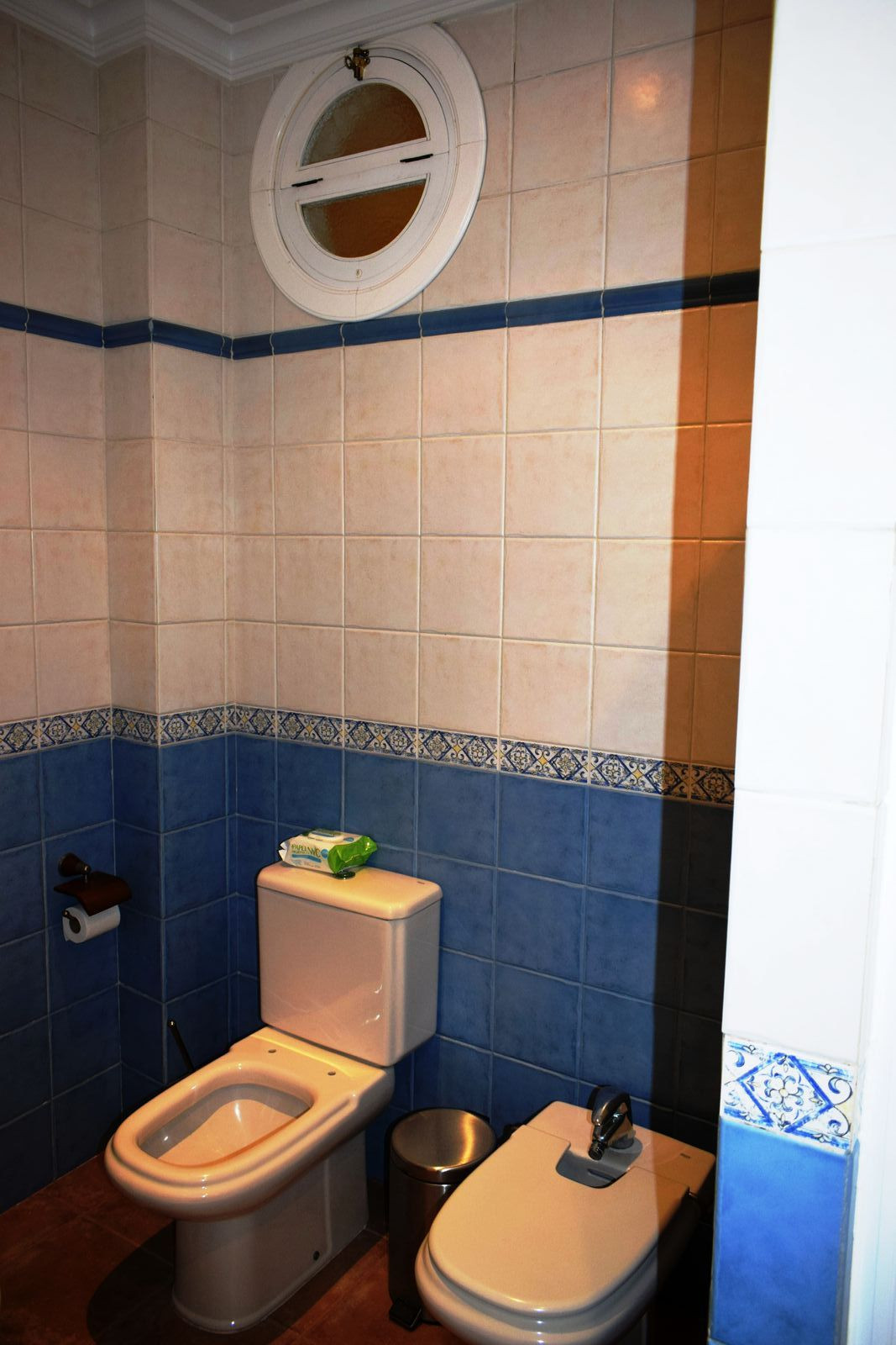 On this ground floor, apart from the large rooms mentioned before, there is a wc, a treatment room, a bodega/bar and the large garage with room for up to 7 cars accessed via a different street.