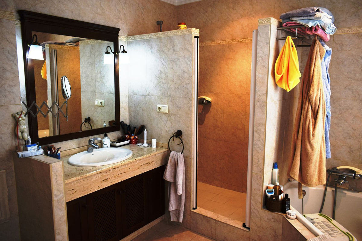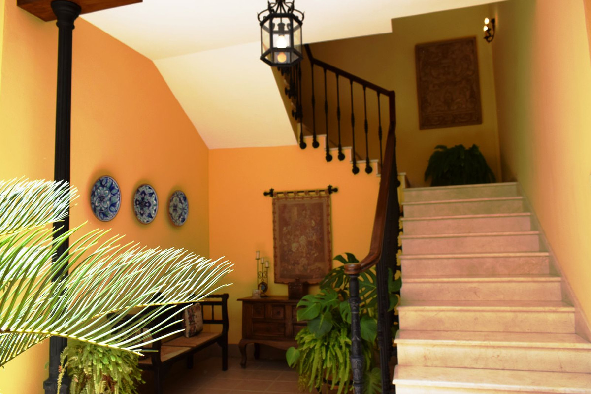 From the courtyard you can go up the magnificent stairs to the first floor, but there is also another access directly into the kitchen from here. The first floor comprises a large, fitted kitchen with dining area, large utility room with small courtyard, living room with fireplace, high ceilings and a mezzanine floor where the library is. There is also a separate smaller living room and the hall that leads you to the 3 double bedrooms, one of them with en-suite facilities and a walking wardrobe plus a separate family bathroom.