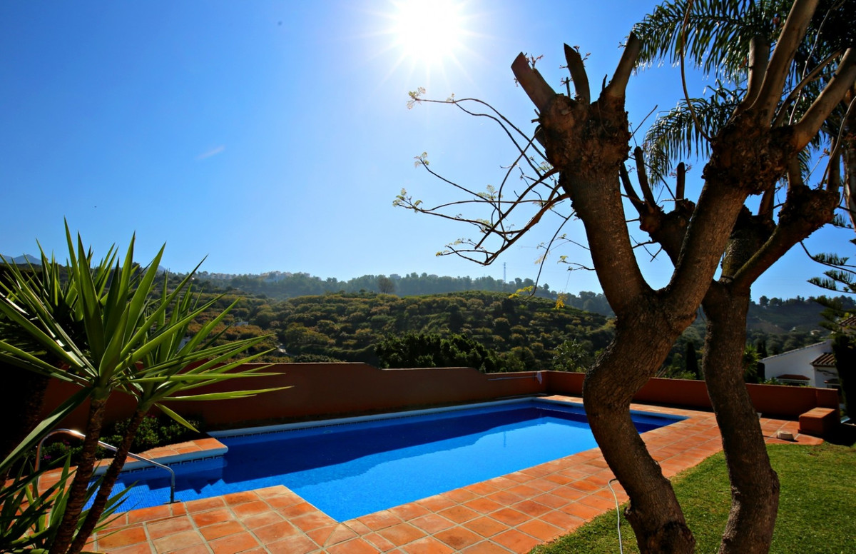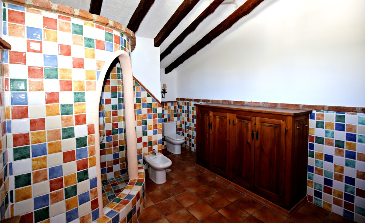 Exclusive and unique of its kind: a 16.000m2 Andalusian vacation resort with horse farm between Frigiliana and Nerja - with a built-up area of more than 1.600m2! In total, the resort has nine bedrooms, ten bathrooms and two guest toilets, spread over two traditional and authentically designed building complexes. The smaller house has a private pool as well as several terraces and consists of three bedrooms, three bathrooms, a large salon with fireplace and a fully equipped kitchen. The main building is divided into two wings, each with three bedrooms and bathrooms, a shared kitchen and a salon with fireplace. From both salons you enter the park area behind the house with its characteristic double pool. Moreover, a large garage under the main house can be easily transformed into two more independent living units; all the fixtures are already in place. The riding arena of the property measures 20x40 meters and is equipped with floodlights. Currently, the resort has two stables with a total of 13 boxes. Sounds like a true dream? We think so too - and are pleased to be able to present this exclusively marketed property to you in person on site or via virtual tour... here with us: on the sunny side of life.