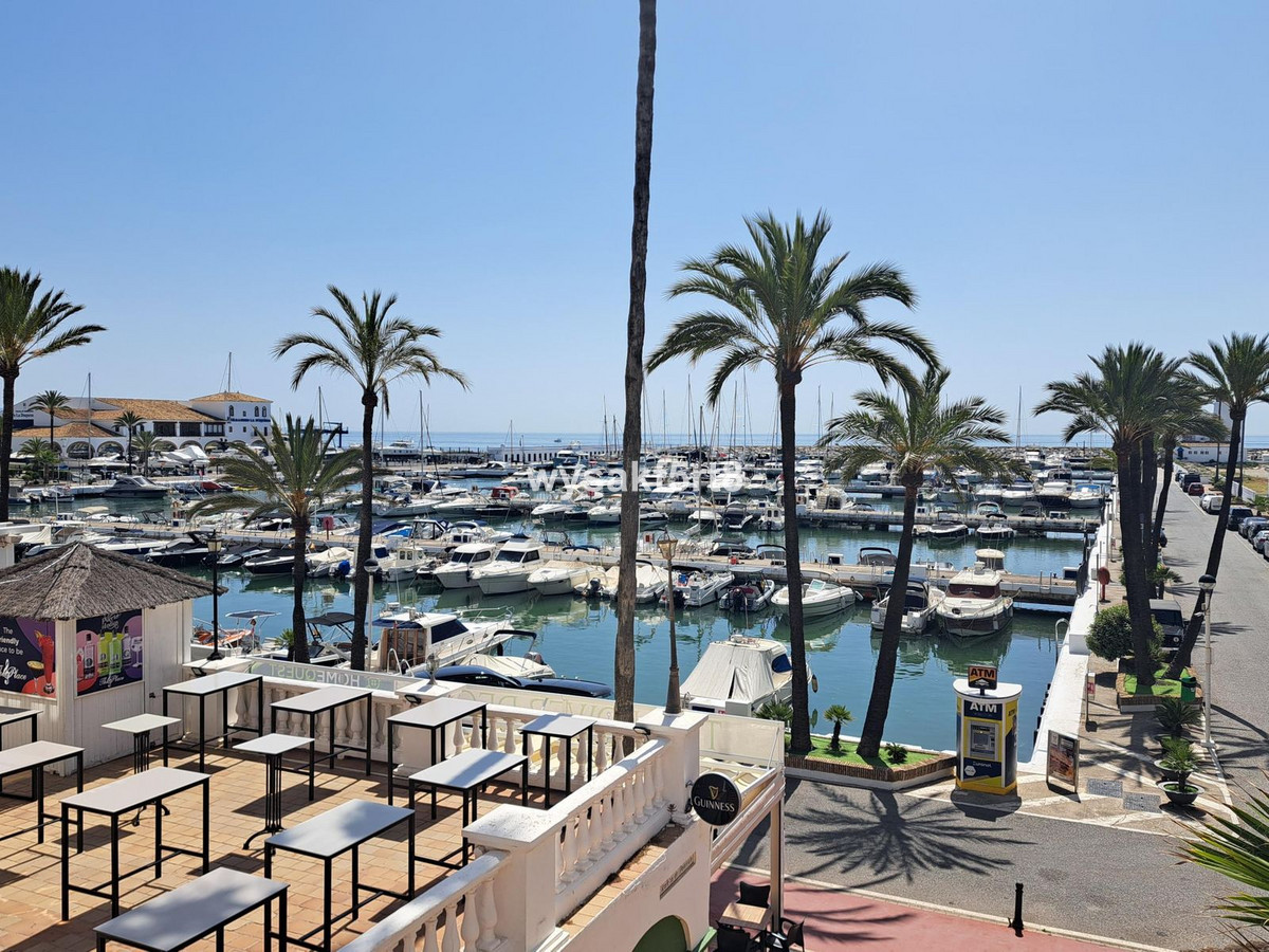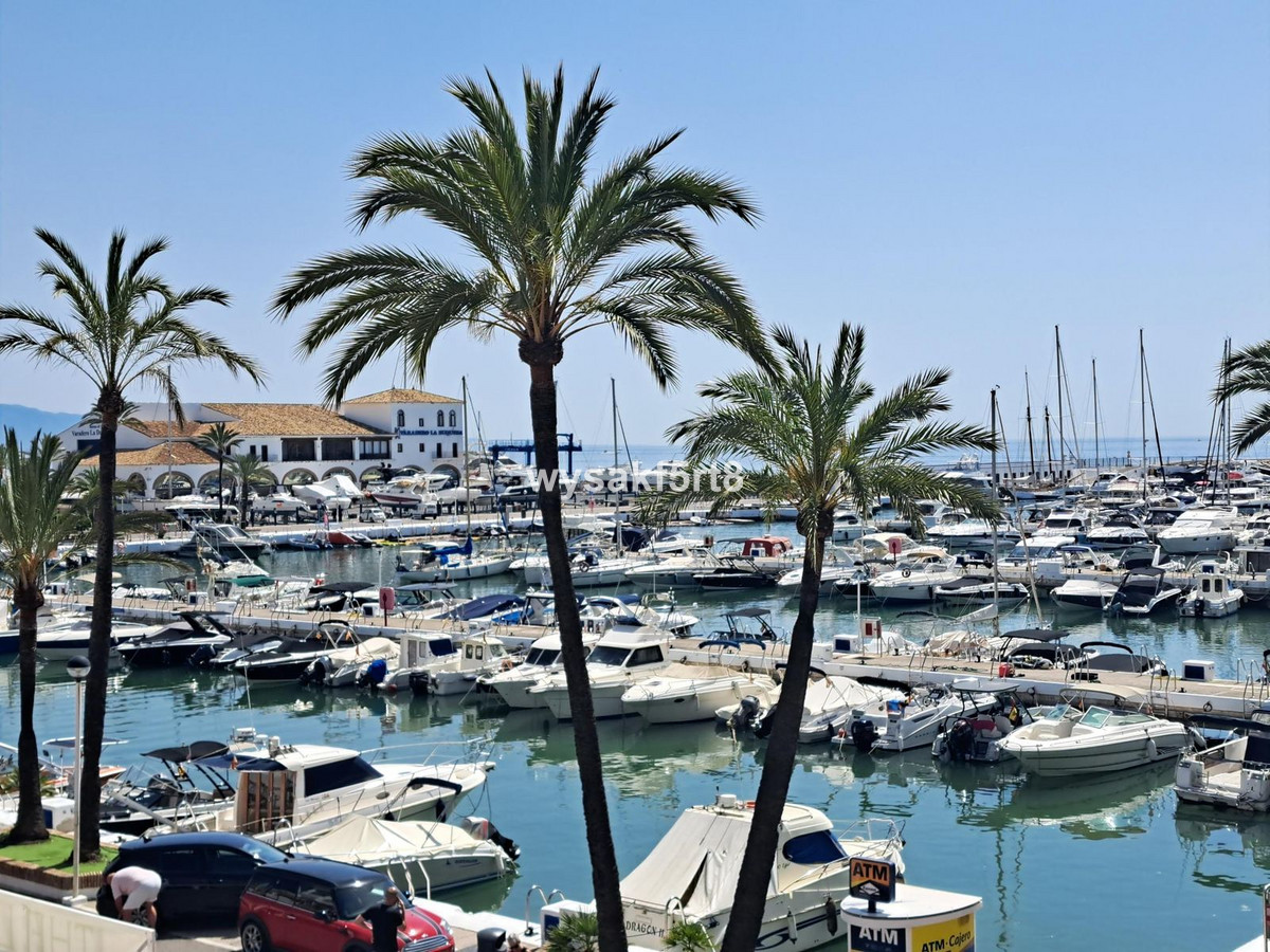 This middle-floor property includes a spacious and bright living room from which you access the 12 m² covered terrace with fantastic Southeast views of the Mediterranean Sea, golf course, and Duquesa port. Two bedrooms, 2 bathrooms. Both bedrooms offer plenty of space and a wardrobe. The master bedroom has an en-suite bathroom and access to the main terrace. There is an additional bathroom next to the second bedroom. Large equipped kitchen. Preinstallation of hot & cold air-conditioning, exterior parking.