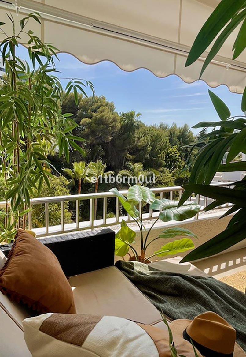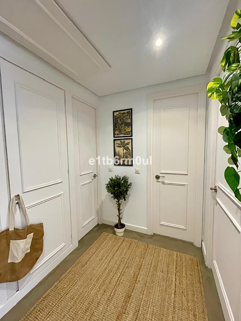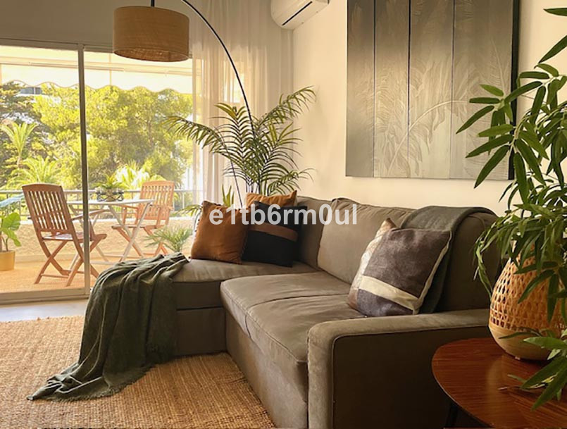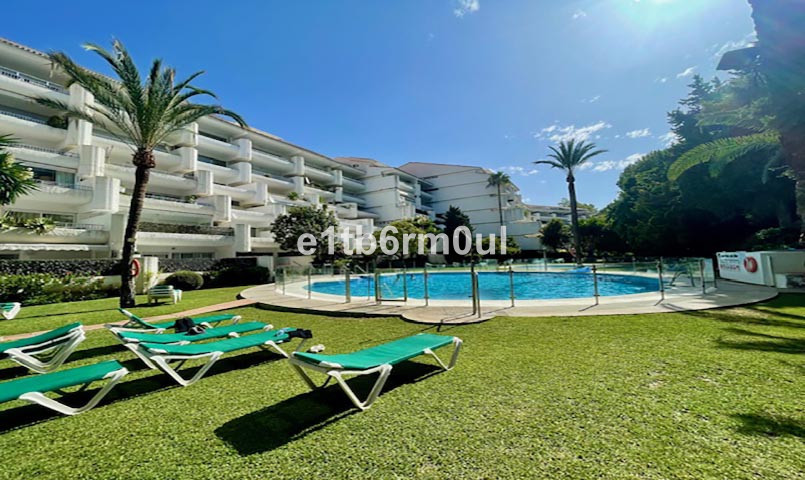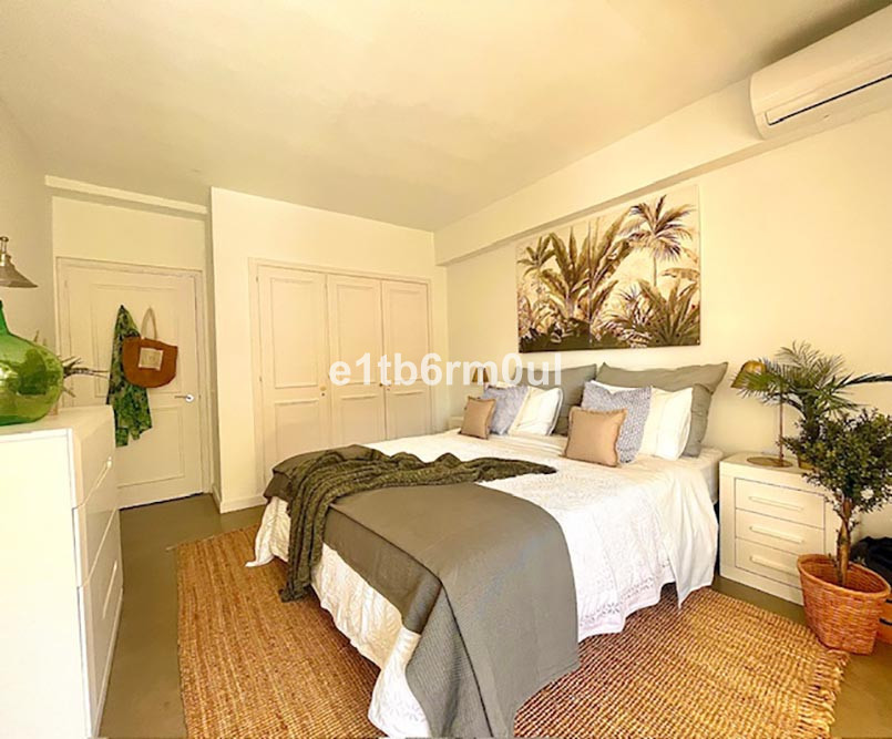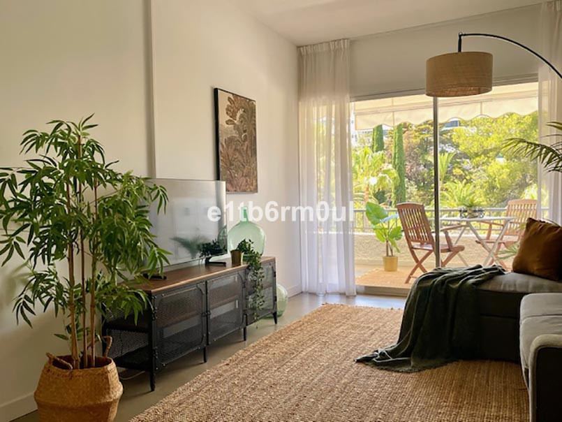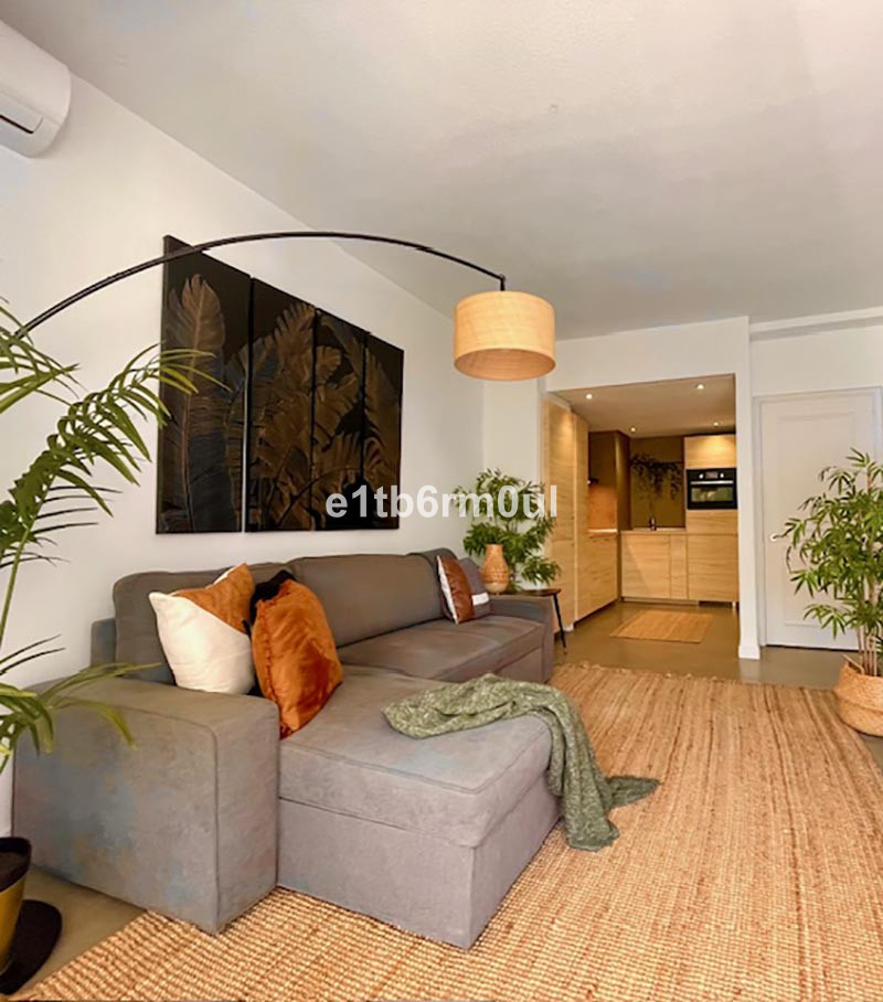 This elegant one-bedroom south facing apartment is situated in a prime location, beachside and within a three-minute walk to the beach on the highly sought-after Marbella Golden Mile, an easy walking distance to the shops, town centre, and port, and restaurants The apartment forms part of a gated community, ensuring privacy and security with 24-hour concierge service. The apartment features a bright airy living space with a fully fitted modern kitchen. The large, spacious light-filled bedroom with wardrobes offers a calm and inviting retreat. Contemporary shower room with sleek walk-in enclosure with floating vanity unit and storage. For added convenience and privacy there is a separate toilet. Climate control is taken care of with hot and cold air conditioning, ensuring year round comfort. The spacious balcony includes a storage area and sun blinds for those warm sunny days. The community areas include a well-maintained garden, two swimming pools, and secure communal parking.
