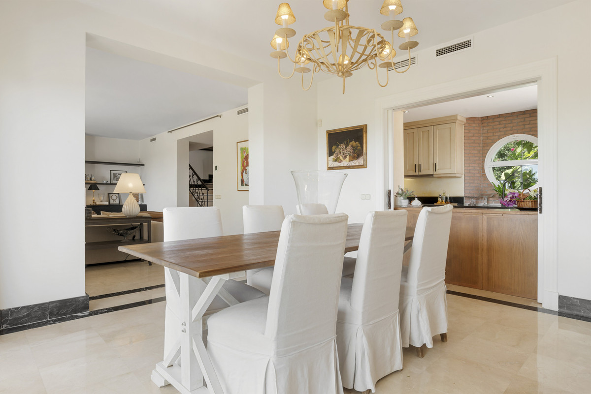 Outdoors, the villa embraces Marbella’s lifestyle with a private south-facing garden, a sparkling swimming pool, and both open and covered terraces ideal for year-round entertaining. From the ground floor, there are views of the sea, while just a short walk away lie the beaches, Puerto Banús, and an array of restaurants and boutiques. Families will also appreciate the proximity to top international schools, including Aloha College, the Swedish School, and the American College.