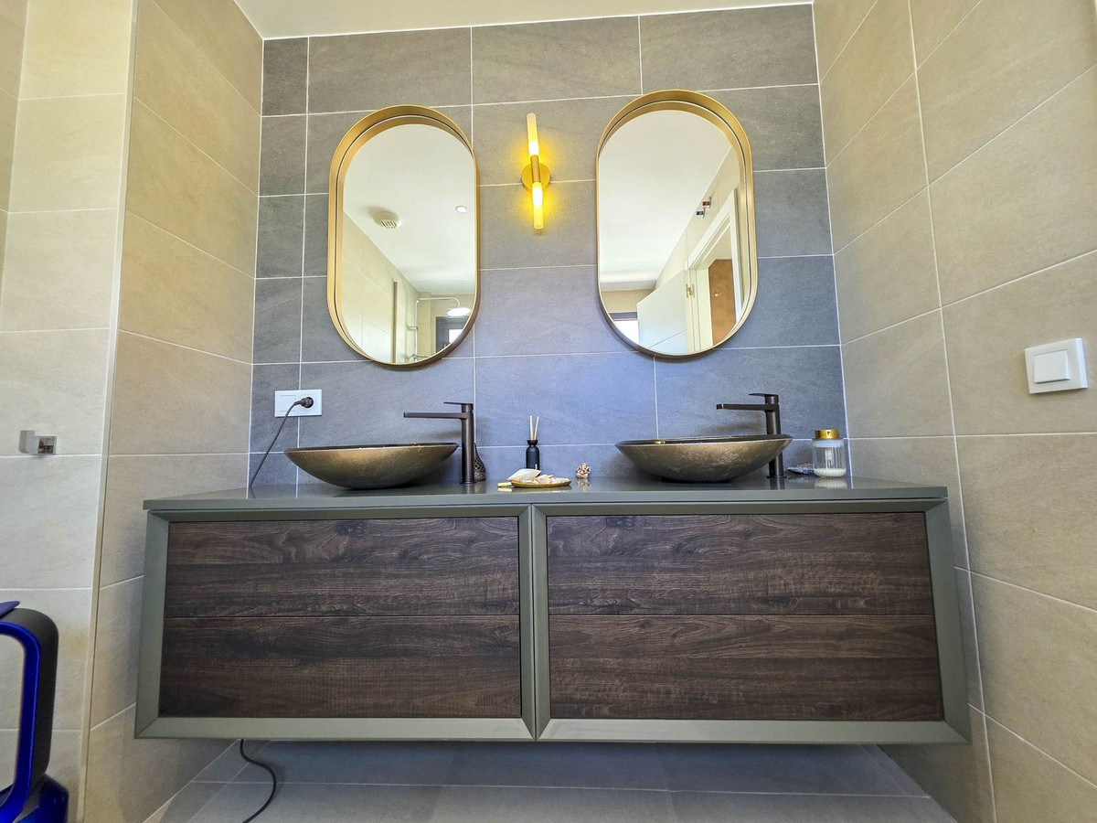 Een zeer praktisch kenmerk van deze woning zijn de twee onafhankelijke ingangen: vanaf het bovenste gedeelte, waar de parkeerplaatsen zich bevinden, en ook vanaf het onderste gedeelte, wat gemak en functionaliteit biedt in het dagelijks leven.