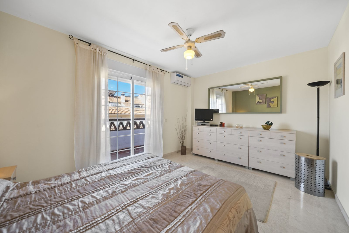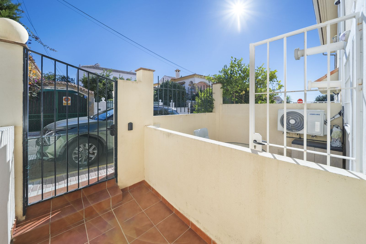 Charmante gezinswoning met 3 slaapkamers, patio aan de voorzijde, privégarage en gemeenschappelijk zwembad in Arroyo de la Miel, Benalmádena