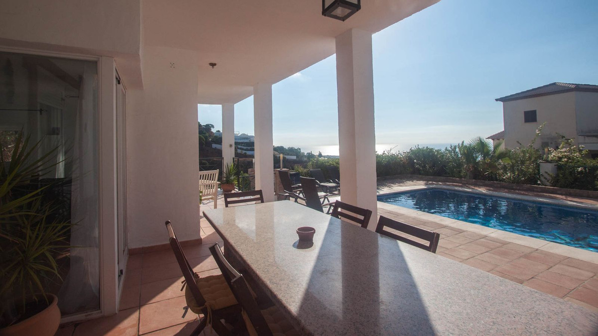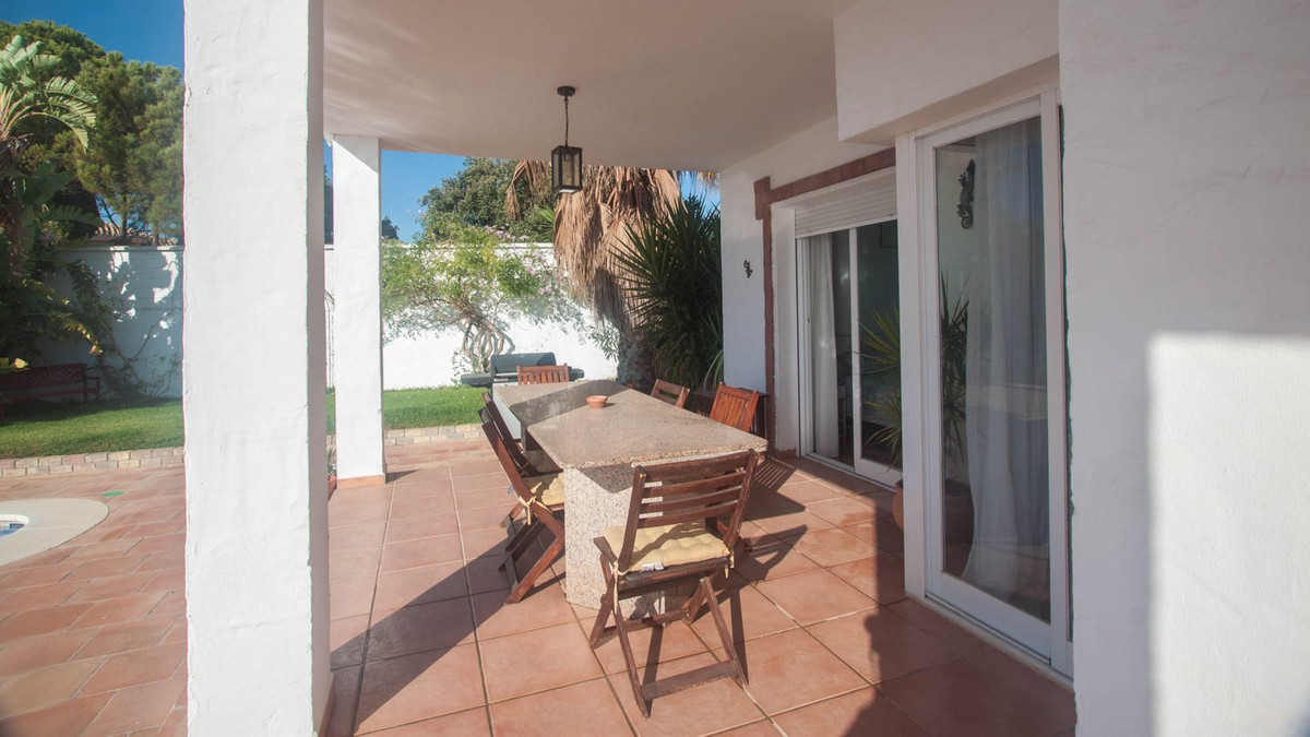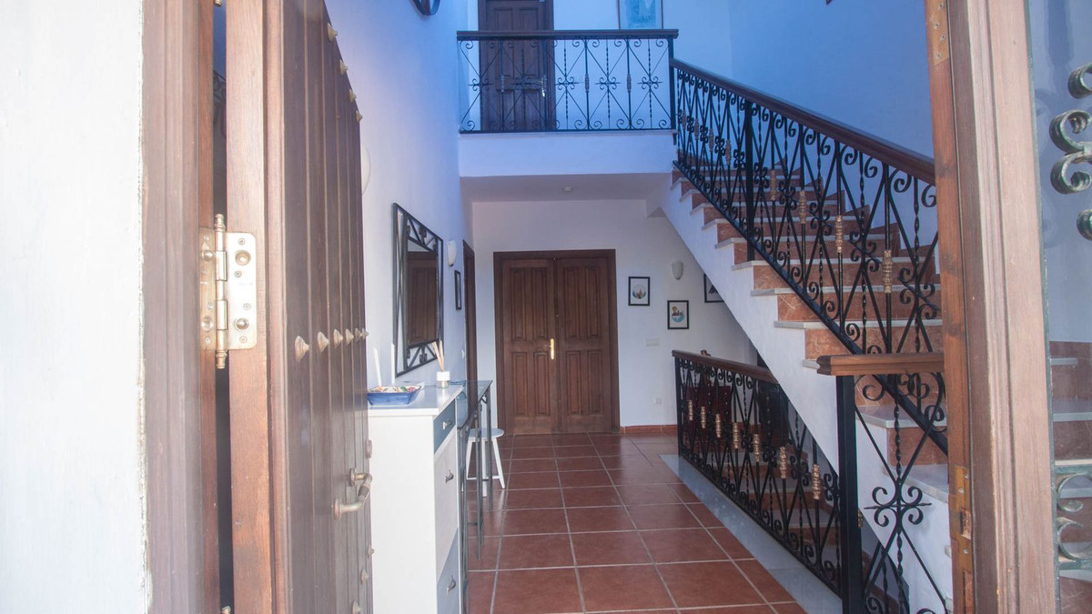 Deze villa in Andalusische stijl, met rustieke accenten en een elegant architectonisch ontwerp, is gebouwd op drie niveaus en heeft toegang via een elektrische poort die uitkomt op een ruime parkeerplaats.