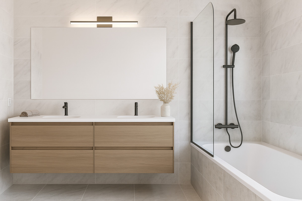 Het slaapgedeelte bevindt zich op de bovenverdieping en bestaat uit drie slaapkamers, alle met inbouwkasten. De hoofdslaapkamer beschikt over een inloopkast, een eigen badkamer en toegang tot een privéterras van 20 m² met direct uitzicht op de golfbaan. De andere twee slaapkamers delen een complete badkamer met een ligbad.