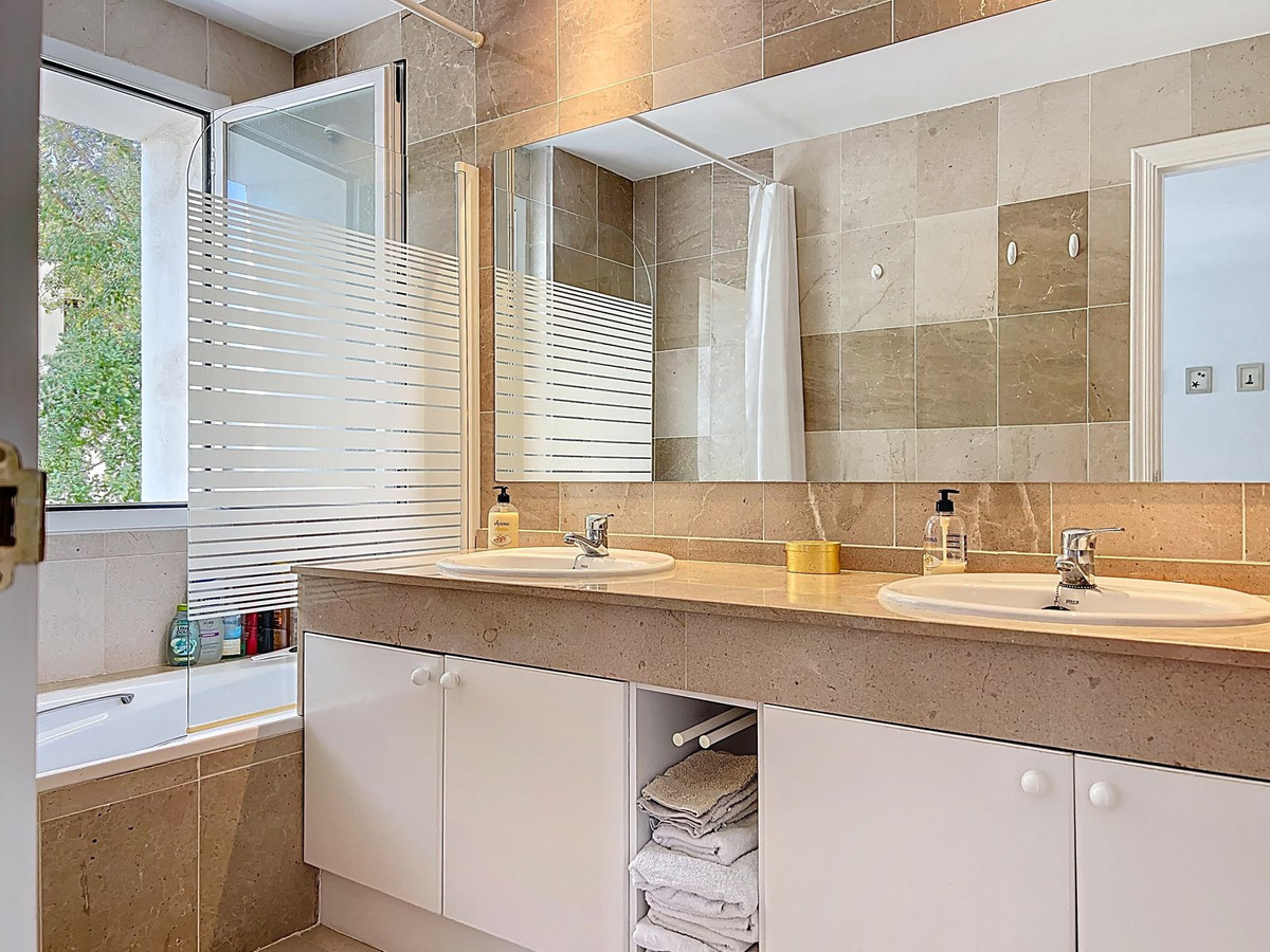 The apartment is part of a secure gated community, offering not only peace of mind but also beautifully maintained communal gardens with mature cork trees, tropical plants, and a sparkling swimming pool that perfectly complements the natural surroundings. A private outdoor parking space adds to the everyday convenience.