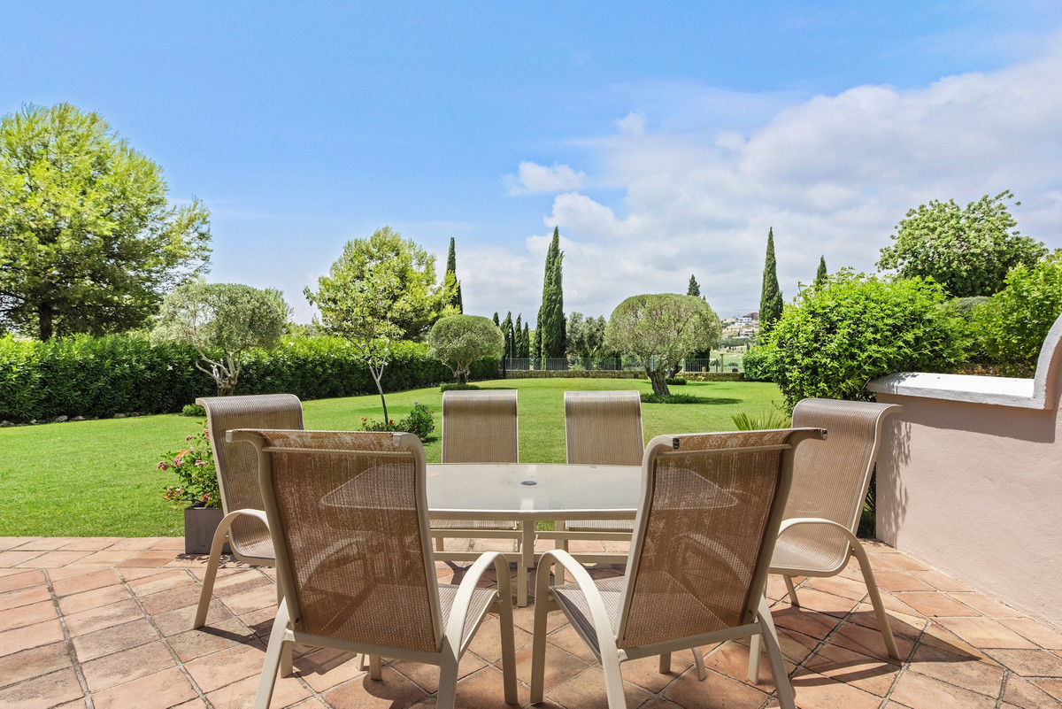 Binnen loopt de lichte, open woon- en eetkamer naadloos over in de buitenlucht en biedt zo de perfecte setting voor een mediterraan leven het hele jaar door. De woning beschikt over een ruime master suite met een elegante ensuite badkamer met dubbele wastafels, een ligbad en een inloopdouche, een volledig uitgeruste keuken en een gastentoilet. Zowel de woonkamer als de slaapkamer geven direct toegang tot het terras en de tuin.