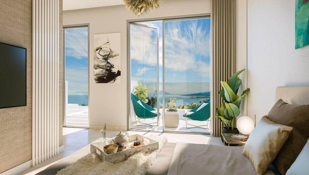 Off Plan - Luxurious 3-bed townhouse for sale in Manilva. All the homes in this contemporary residential feature a sleek design and they will be finished to high standards. They boast ample and bright interior spaces, large gardens, extensive terraces, and impressive solariums on the top roof terrace. The terraces offer stunning views of the sea and Gibraltar. Some of the gardens provide the possibility to allocate a private pool. There is a basement of 60m2 for two cars and a lot of extra space that can adapt to your needs. Also, the majority of the townhouses offer the possibility to add a fourth bedroom in the large solarium.