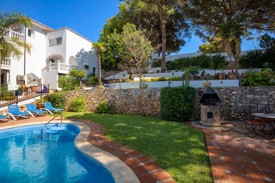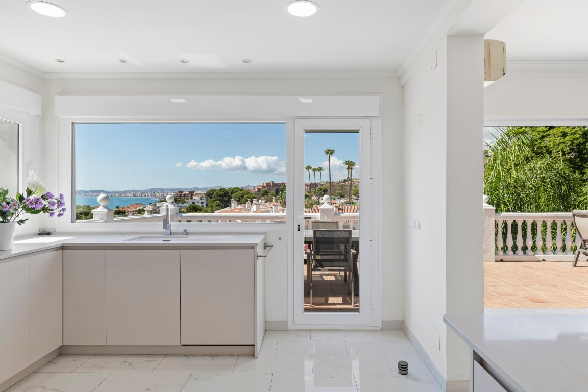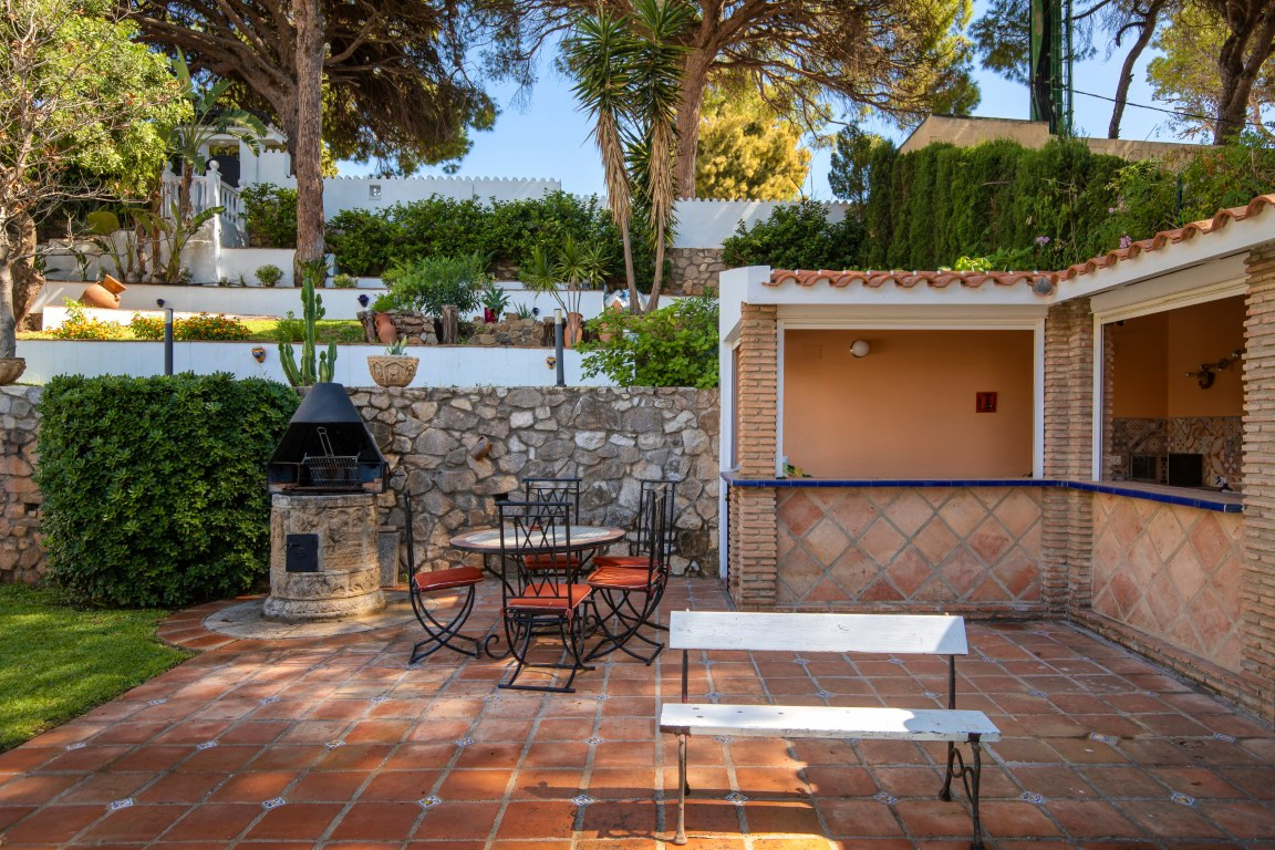 Just a five-minute walk from the sea and offering breathtaking, unobstructed views of the Mediterranean, this villa in Torremuelle, Benalmádena, is much more than a property, it\'s an invitation to live surrounded by light, tranquility, and nature.Set on a generous 1,328 m² plot, with a total built area of 413 m² distributed over three floors, the villa provides a solid foundation with outstanding potential for a full renovation that could truly enhance its value and character. While the home is in good condition and ready to move into, it presents a fantastic opportunity for those looking to create a bespoke residence in one of the most sought-after coastal settings.The villa features six bedrooms and four bathrooms, along with a spacious and bright living room with a cozy fireplace and large windows that perfectly frame the sea views. The kitchen has been recently renovated, is fully equipped, and opens directly onto a terrace where the Mediterranean takes center stage. Additional spaces include a gym area, wine cellar, and several sun-drenched terraces that can be adapted to suit any lifestyle or family need.The exterior is a true Mediterranean retreat, with a lush, mature garden and water features surrounding a large private pool, complete with shower area, outdoor bathroom, and a fully equipped summer kitchen with BBQ, ideal for entertaining and enjoying the Costa del Sol climate. The property also includes a covered garage and additional on-site parking.The location is simply unbeatable. Nestled in a peaceful residential area, it’s exceptionally well connected, just minutes from local bus stops and the Torremuelle train station, which offers easy access to Málaga and Fuengirola. Only a short 3-minute drive to restaurants, cafés, beach clubs, and supermarkets like Lidl and Mercadona. Sports lovers will appreciate the proximity to the Torremuelle Racket Center, offering tennis and paddle courts just 6 minutes away, as well as the prestigious Torrequebrada Golf Club only 10 minutes from the villa. Málaga International Airport is conveniently located just 20 minutes away by car.A home with soul, spectacular views, and incredible potential to personalize, without giving up the comfort of being move-in ready. Whether you\'re looking for a primary residence, a holiday home, or a high-potential investment in one of the most desirable areas of the Costa del Sol, this villa is a must-see. Contact for private tour.The abbreviated information document is available to you. Expenses: Taxes (ITP or VAT+AJD) + Notarial and registration expenses.ALA..