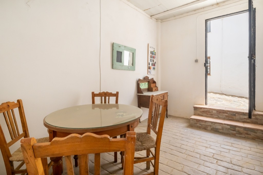 Vehicle entrance with parking for several vehicles and a fully fenced green area with olive trees. A picturesque entrance through a reception hallway leads to a beautiful interior courtyard that divides the 3 properties and also provides access to the pool and barbecue area.
