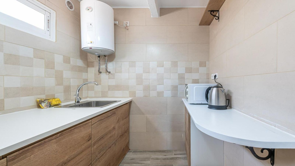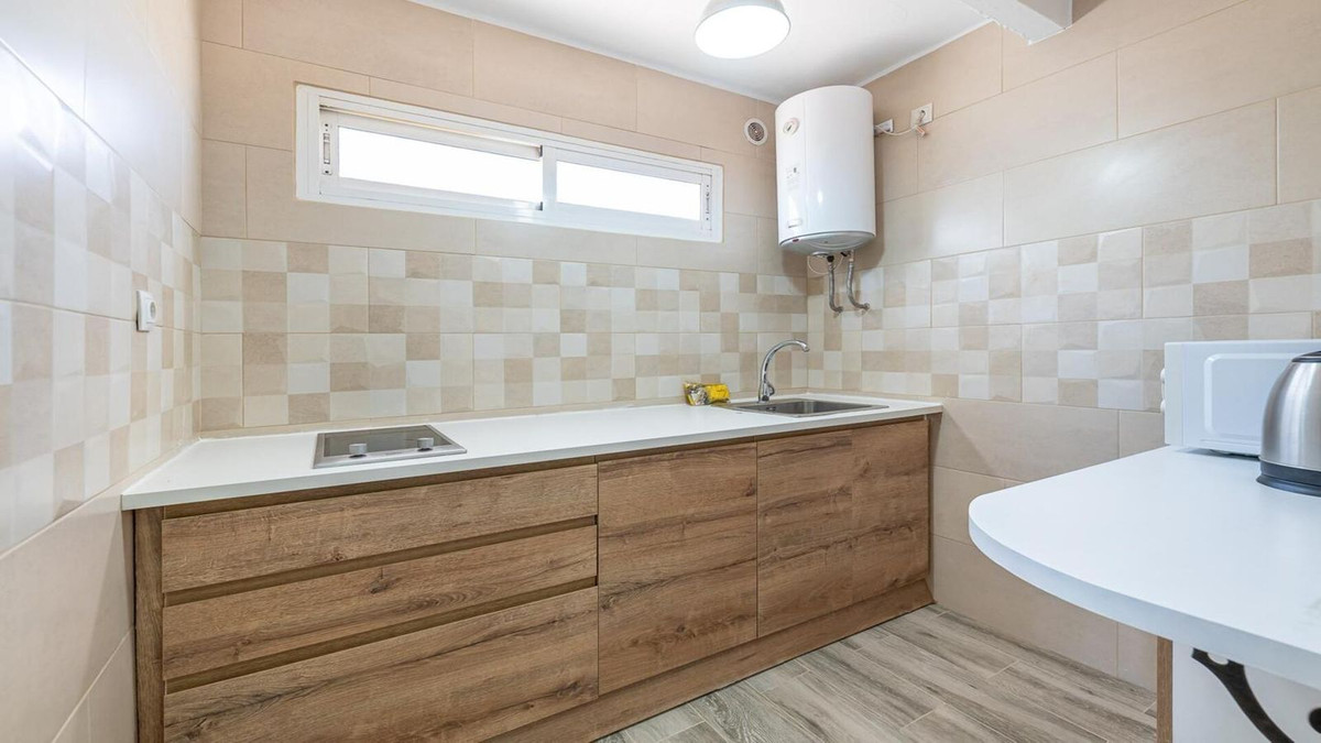 Aparte keuken: Volledig uitgerust en gescheiden van de woonkamer, zodat u in de hoofdruimte kunt koken zonder geurtjes of lawaai. Inclusief alle benodigde apparatuur (oven, kookplaat, koelkast, wasmachine).