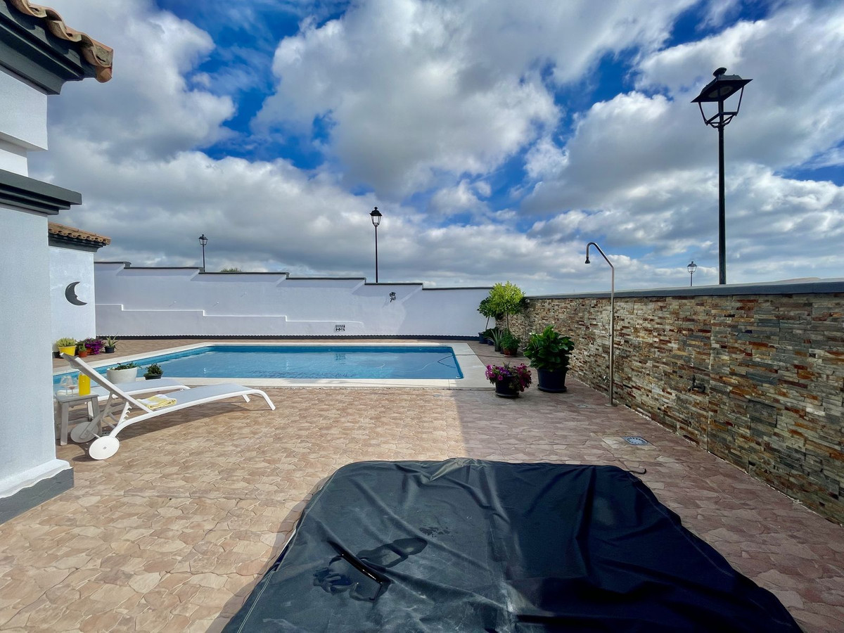 De woning is gelijkvloers en beschikt over vier slaapkamers, een lichte en ruime woonkamer met toegang tot het terras met toegang tot een groot privézwembad van 40 m² en een aparte verwarmde spa van 5 m². Het zwembadgedeelte is volledig betegeld en versierd met potplanten, wat zorgt voor een groene sfeer en tegelijkertijd het onderhoud eenvoudig houdt. Er is ook een garage/oprit met ruime bergruimte en parkeergelegenheid op eigen terrein voor drie auto's.