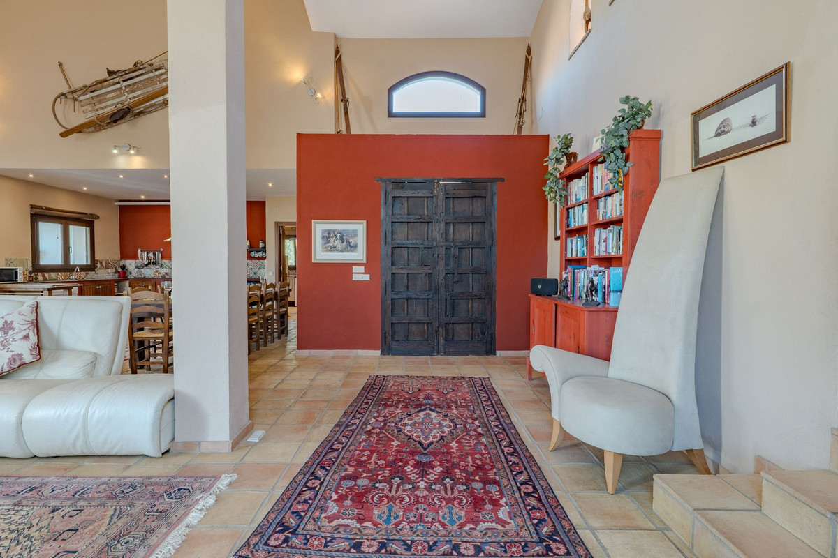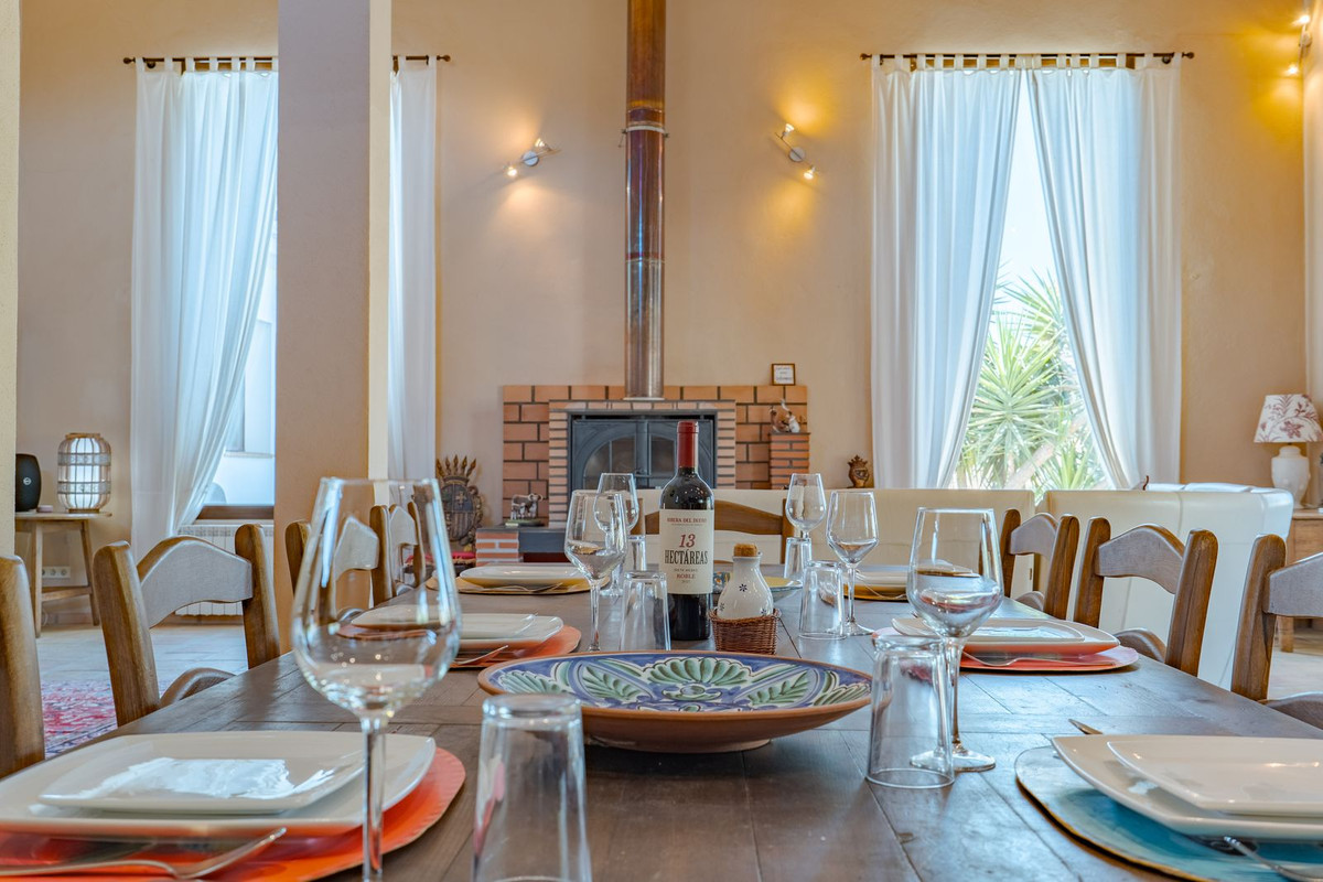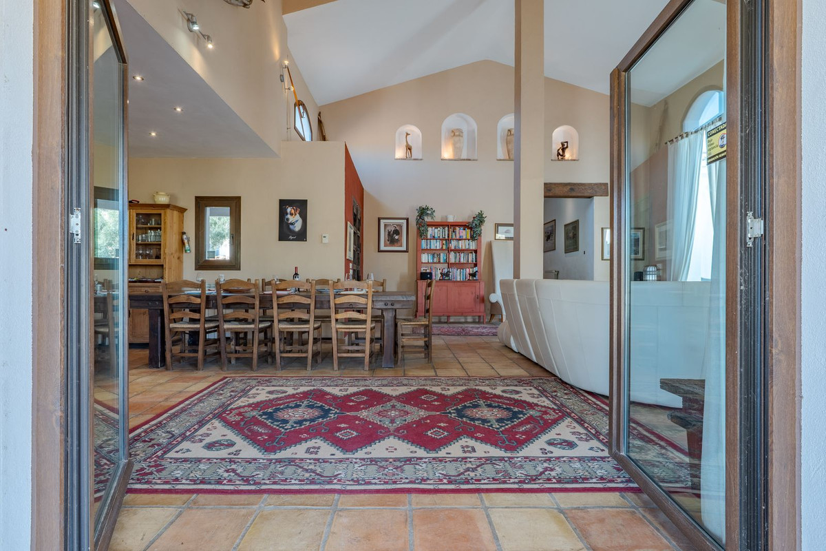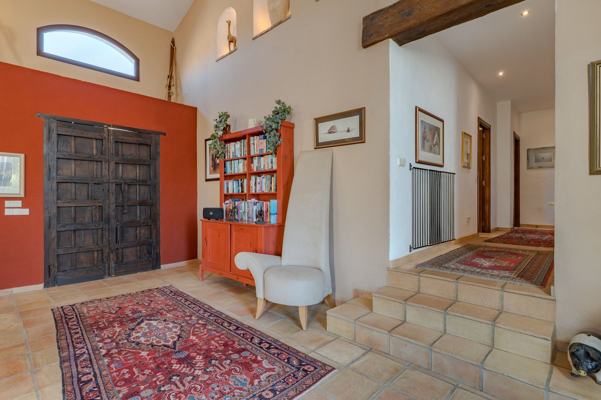 Hoge plafonds en grote ramen: deze architectonische kenmerken zorgen de hele dag voor maximale lichtinval en accentueren het ruimtelijke gevoel. Geniet op koelere avonden van de warmte van de open haard, omringd door charmante terracotta vloeren en de prachtige Spaanse houten voordeur die de landelijke sfeer benadrukt.
