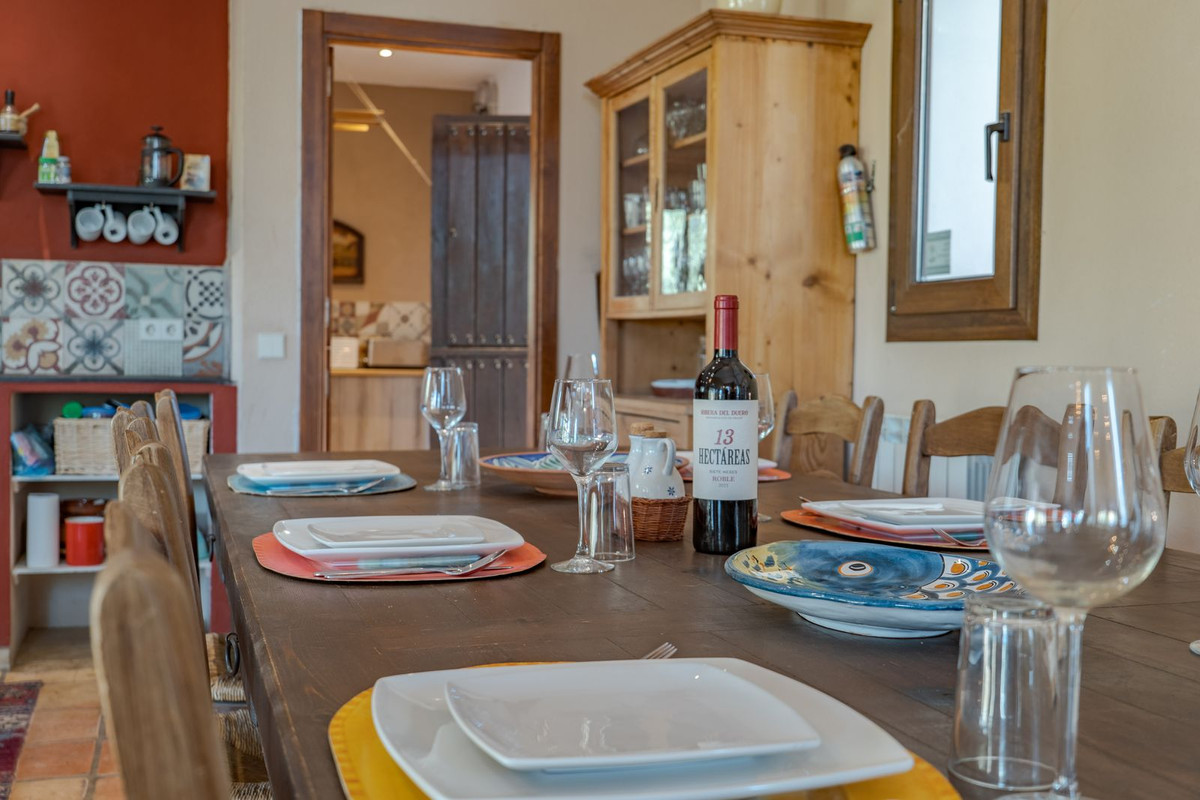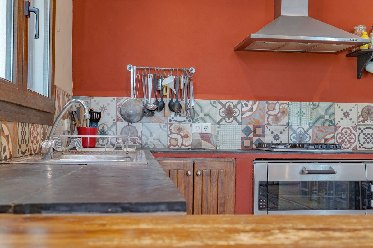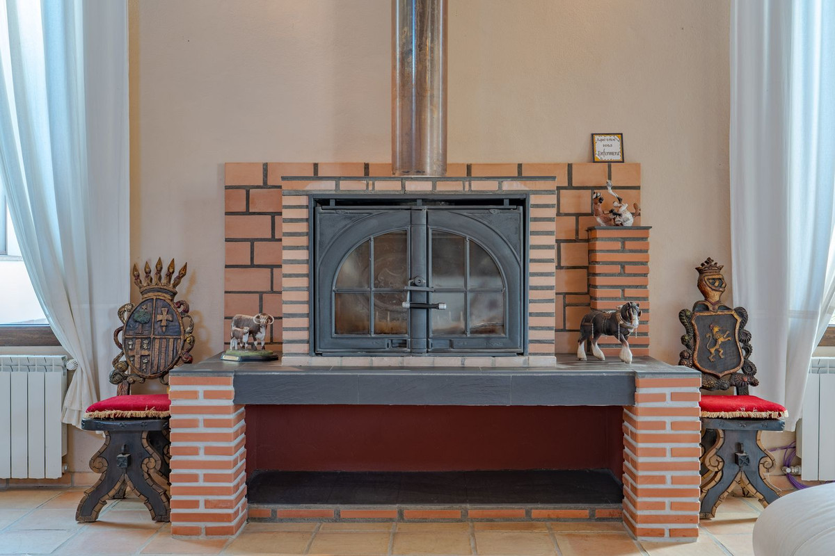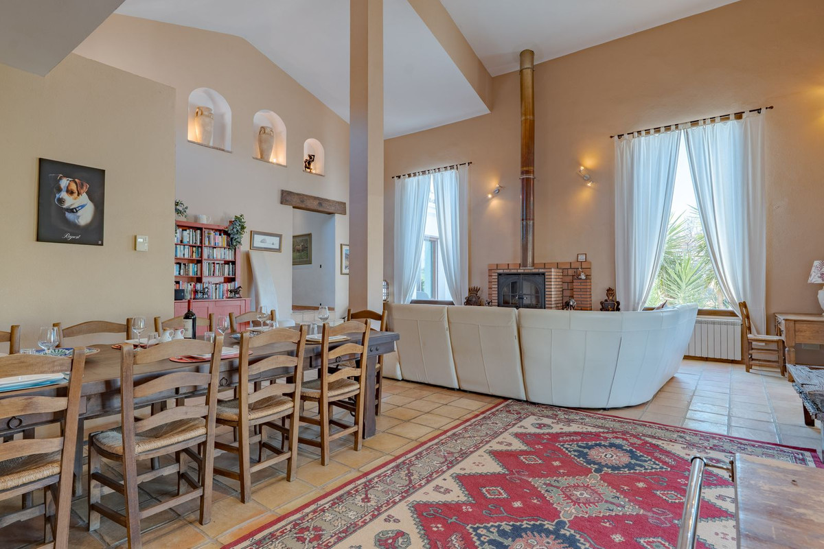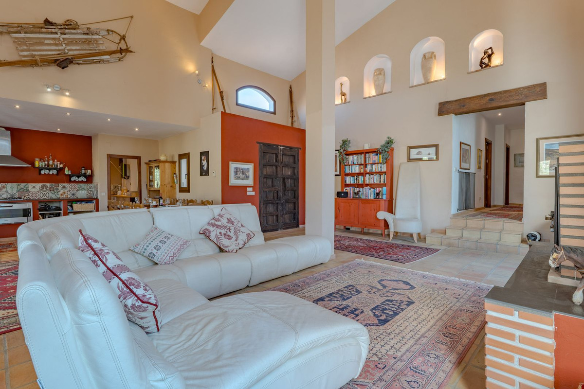 Hoge plafonds en grote ramen: deze architectonische kenmerken zorgen de hele dag voor maximale lichtinval en accentueren het ruimtelijke gevoel. Geniet op koelere avonden van de warmte van de open haard, omringd door charmante terracotta vloeren en de prachtige Spaanse houten voordeur die de landelijke sfeer benadrukt.