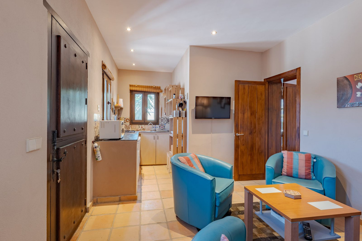 Uniek aan deze finca is het volledig afsluitbare en onafhankelijke gastenverblijf. Het is toegankelijk via het hoofdgebouw, maar heeft ook een eigen ingang, waardoor het ideaal is voor verhuur of als privédomein voor gasten.