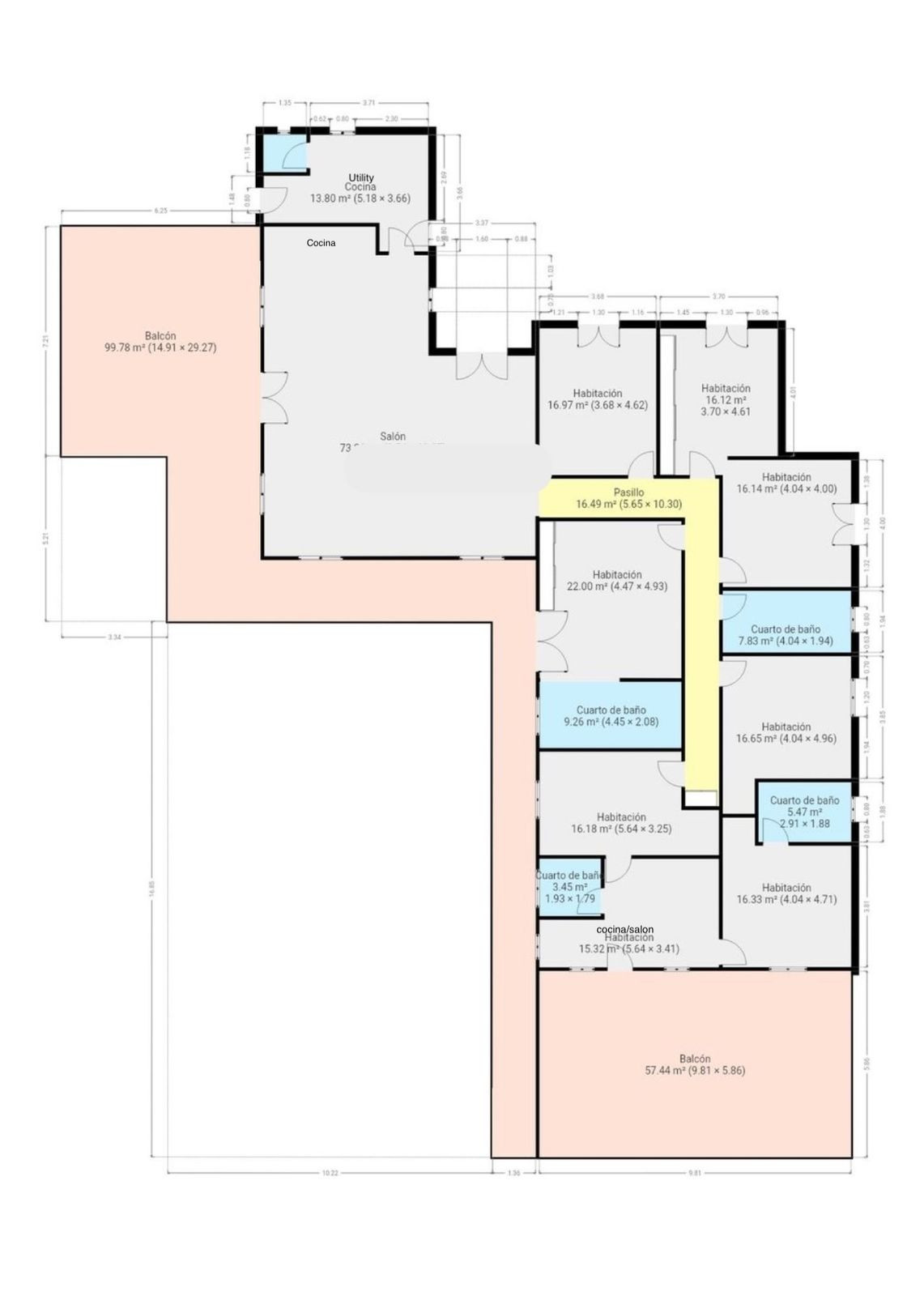 7 slaapkamers, 4,5 badkamers, bebouwd 362 m², terras 150 m².