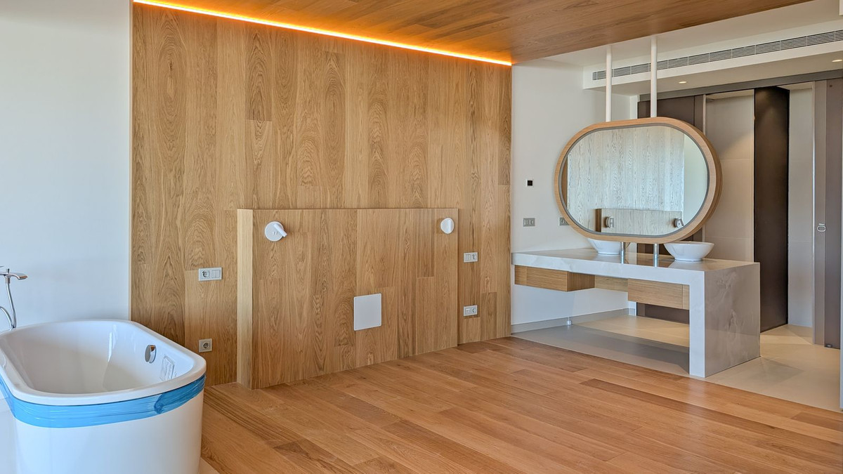 Aerothermische verwarming en vloerverwarming: Een uitgebreid vloerverwarmingssysteem, aangestuurd door efficiënte aerothermische technologie, zorgt het hele jaar door voor een ideale temperatuur en uitzonderlijke energiebesparingen.