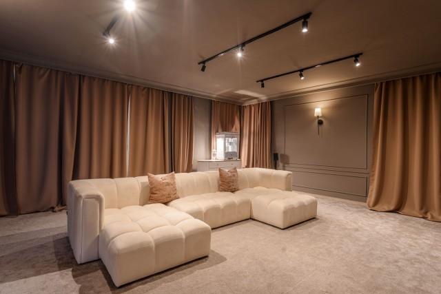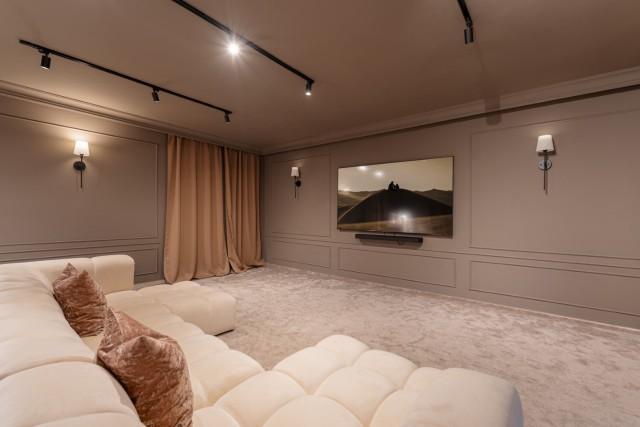 Boven bevindt zich de master suite, een privéparadijs met een sereen uitzicht op de tuin, met daarnaast nog twee extra slaapkamers. De kelder biedt een entertainmentruimte met een thuisbioscoop en nog een gastensuite, ideaal voor vrienden of familie.