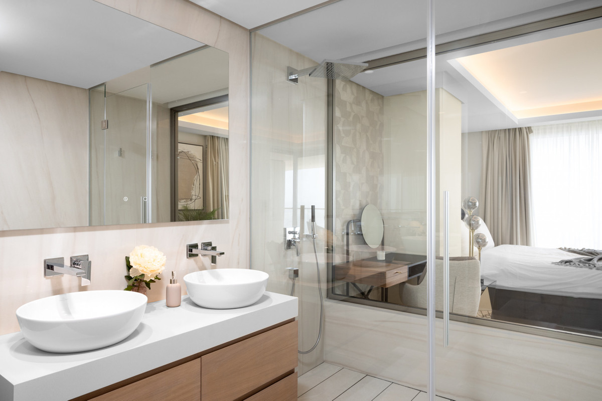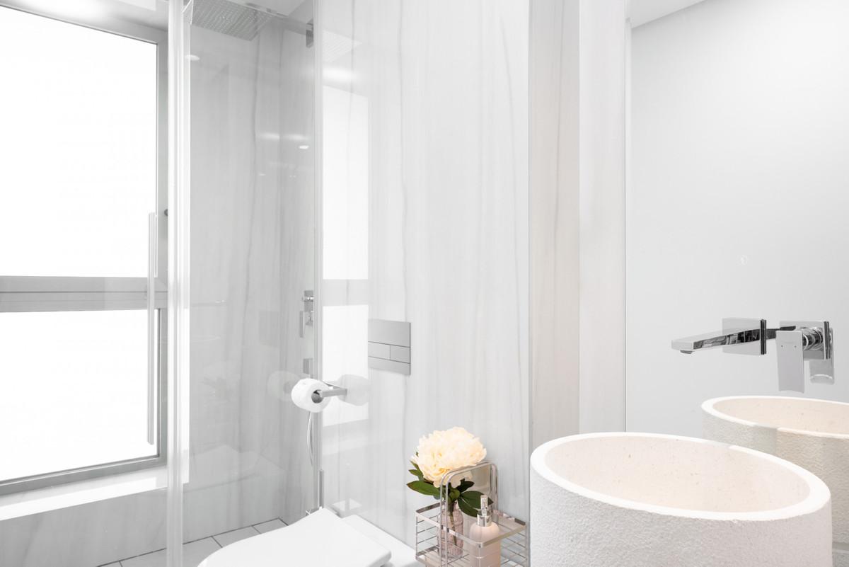Dit elegante appartement heeft een ruime indeling met drie slaapkamers en drie badkamers, allemaal afgewerkt met hoogwaardige materialen. Het moderne design wordt versterkt door geavanceerde smart home-technologie, waaronder vloerverwarming, airconditioning, snelle wifi en een smart-tv. Bovendien beschikt het over twee privéparkeerplaatsen, voor optimaal gemak en veiligheid.