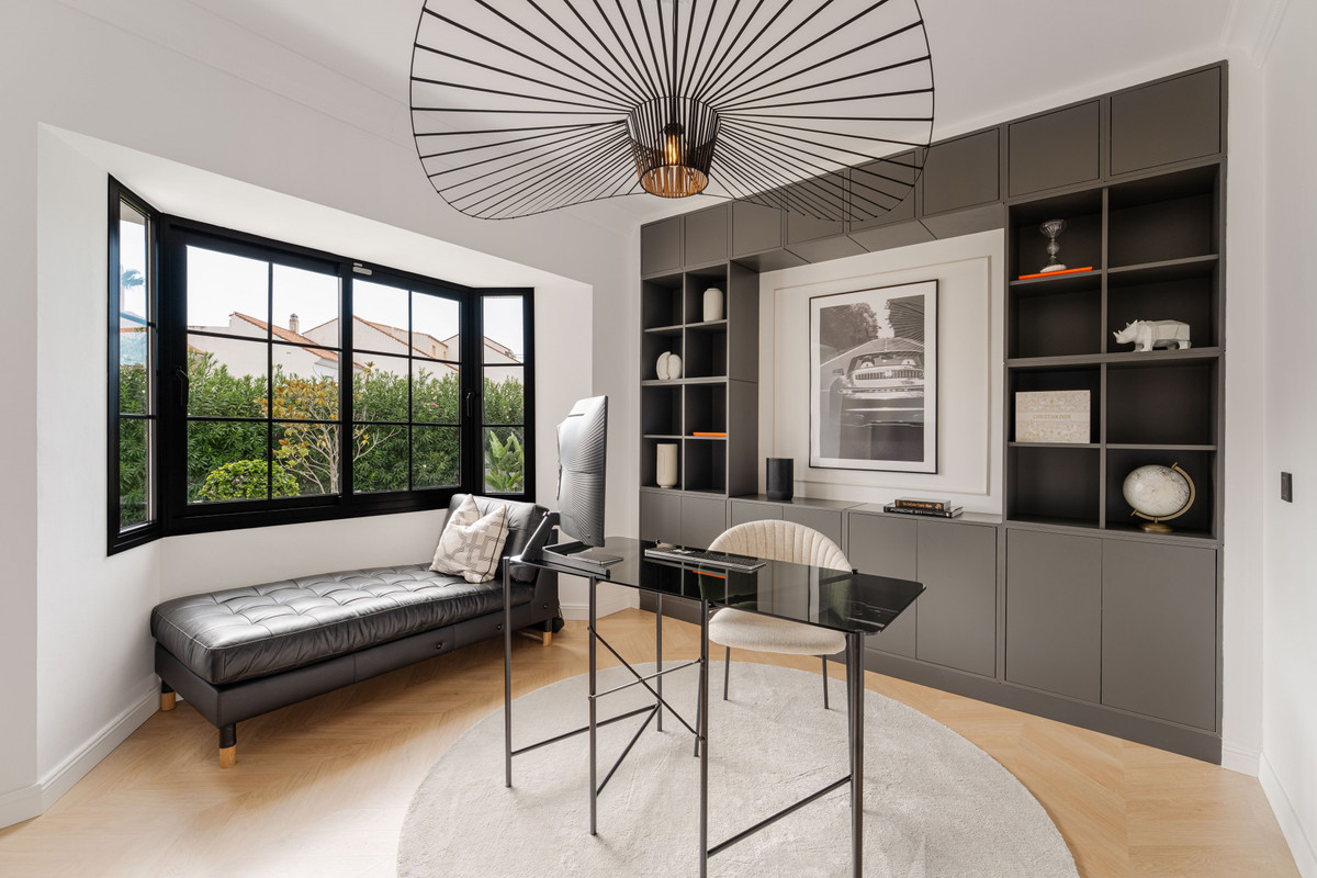 Deze elegante, moderne villa te koop in de woonwijk Monte Biarritz biedt een unieke kans om een volledig gemoderniseerde woning te bezitten die Scandinavische elegantie combineert met intelligent wonen. De villa ligt op slechts vijf minuten rijden van het strand en beschikt over zes ruime slaapkamers en vier badkamers, elk ontworpen met een focus op comfort en verfijning. De villa is verdeeld over drie verdiepingen, met een totale bebouwde oppervlakte van 448 m², inclusief ruime binnenruimtes en een royale tuin die het beste van het mediterrane buitenleven combineert.