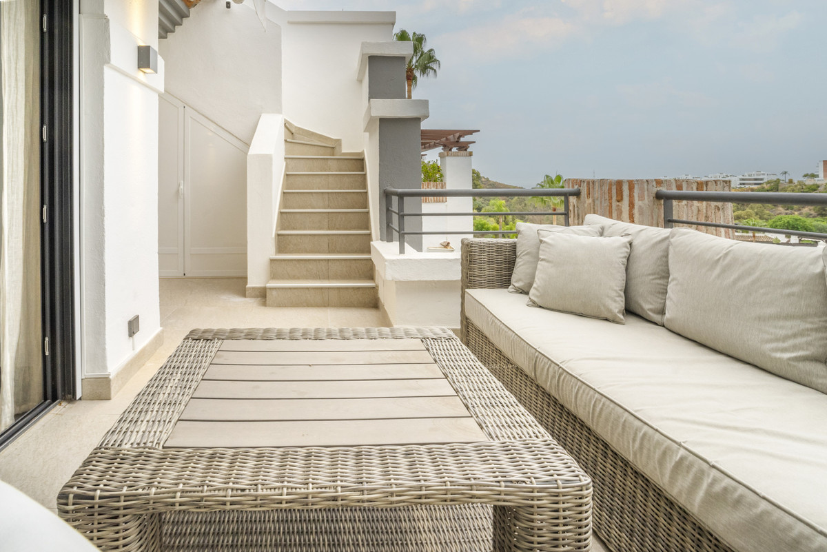 This stylish penthouse for sale in Urb El Lago, within the desirable Los Arqueros community in Benahavís, is offers an exceptional combination of comfort, modern design, and spectacular views. The property has been carefully designed with functionality and elegance in mind, making it ideal for both permanent living and holiday use. With a built area of 168 square meters, including 78m² of refined interior space and a 90m² terrace, the home provides a seamless balance between indoor and outdoor living. The residence features two well-proportioned bedrooms, one of them ensuite bathroom, ensuring convenience and privacy for both residents and visitors.