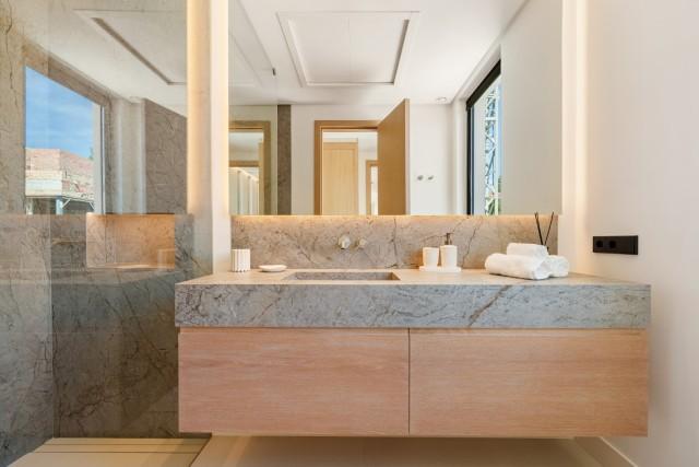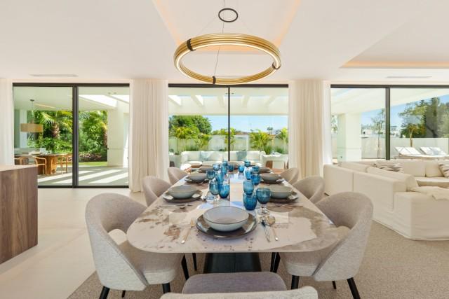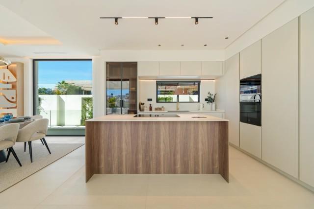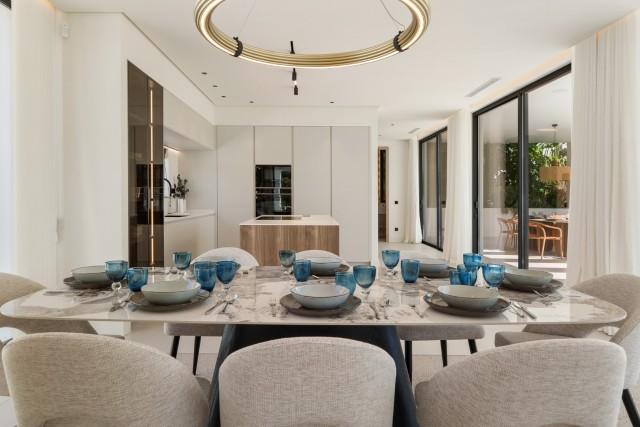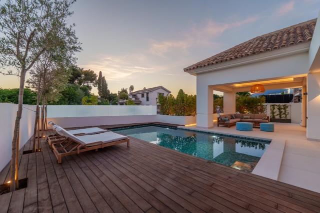 Ervaar het hedendaagse leven aan de kust op zijn best in deze uitzonderlijke luxe villa met 5 slaapkamers te koop in San Pedro de Alcántara, een van Marbella's meest gewilde wijken aan het strand. Deze woning combineert strakke, moderne architectuur met verfijnde interieurs en voorzieningen in resortstijl en biedt verfijning, comfort en de ontspannen elegantie van de mediterrane levensstijl.