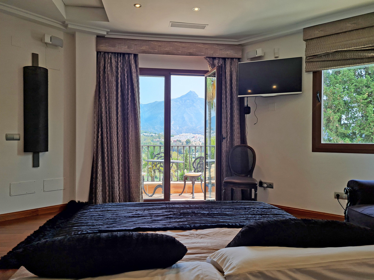 Nestled in a peaceful cul-de-sac, this exquisite villa offers exceptional privacy and breathtaking views over the golf valley towards La Concha Mountain. Built to the highest standards, it spans three levels with elegant interiors and seamless indoor-outdoor living.