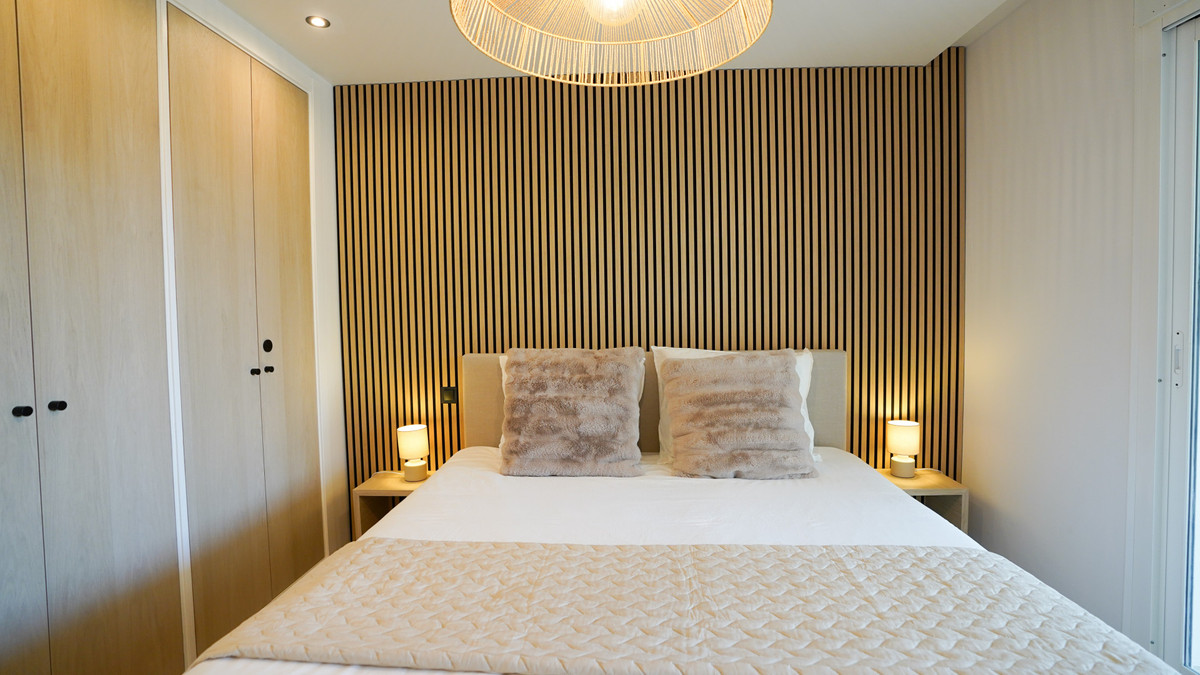 Het appartement beschikt over twee ruime slaapkamers en twee strakke, moderne badkamers, die onlangs allemaal volgens de hoogste normen zijn gerenoveerd. De open woon- en eetkamer loopt naadloos over in een overdekt privéterras met een sereen uitzicht op de tuin en het zwembad – ideaal om buiten te eten of te ontspannen in de zon. Hoogwaardig dubbel glas, airconditioning en een modern alarmsysteem zorgen het hele jaar door voor comfort en veiligheid, terwijl inbouwkasten veel opbergruimte bieden.