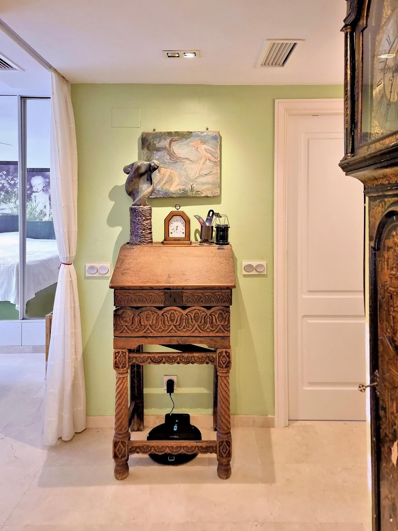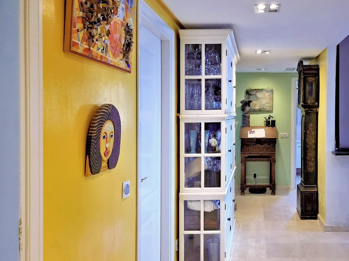 Ruim en licht hoekappartement op het zuiden in Calahonda, dat ruimte, comfort en een spectaculair uitzicht op zee en de bergen combineert. Oorspronkelijk met drie slaapkamers, is het omgebouwd tot twee, waarbij één slaapkamer bij de woonkamer is geïntegreerd om een grotere en veelzijdige ruimte te creëren. Het beschikt over twee badkamers, een kleedkamer, een wasruimte en een gedeeltelijk ingerichte keuken. De woning heeft een overdekt terras, ideaal om te genieten van het weer en het uitzicht op zee, en beschikt tevens over een ondergrondse garage en berging. De hoekligging garandeert meer privacy en natuurlijk licht. Voorzieningen zijn onder andere warme/koude airconditioning, marmeren vloeren, dubbele beglazing, inbouwkasten en rolstoeltoegankelijk. De ontwikkeling biedt twee gemeenschappelijke zwembaden, goed onderhouden tuinen, een intercom, een gated community en uitstekend onderhoud. Gelegen aan een rustige eenrichtingsweg, op loopafstand van restaurants en op 5 minuten rijden van bussen, supermarkten, golfbanen, tennisbanen en het strand. Een unieke kans om te wonen in een van de meest gewilde gebieden van de Costa del Sol, perfect als permanente woning of investering.