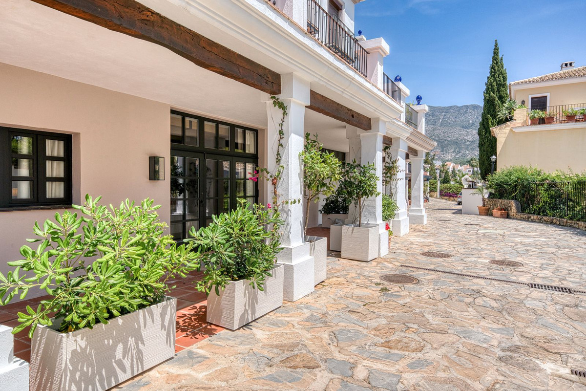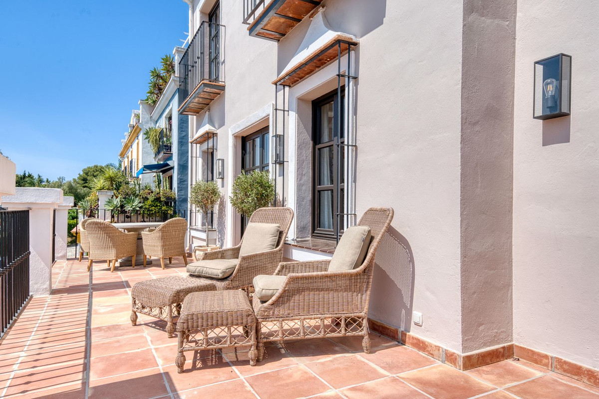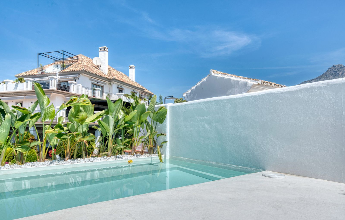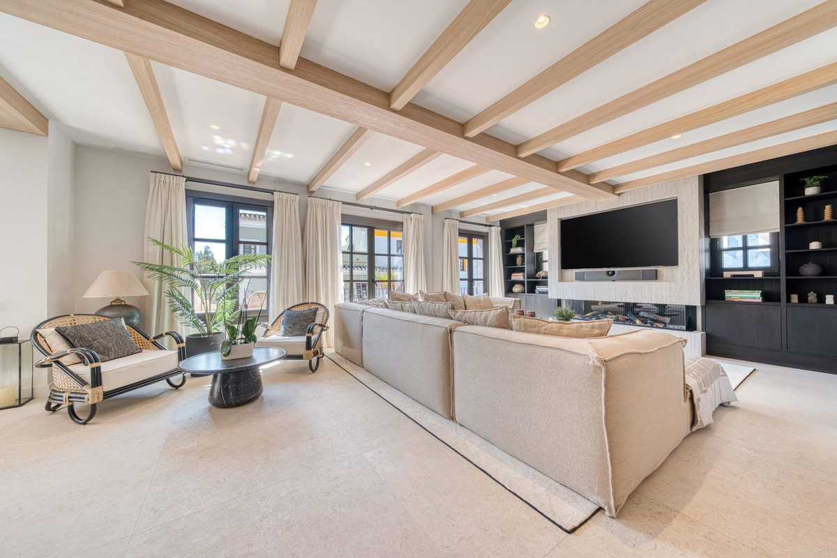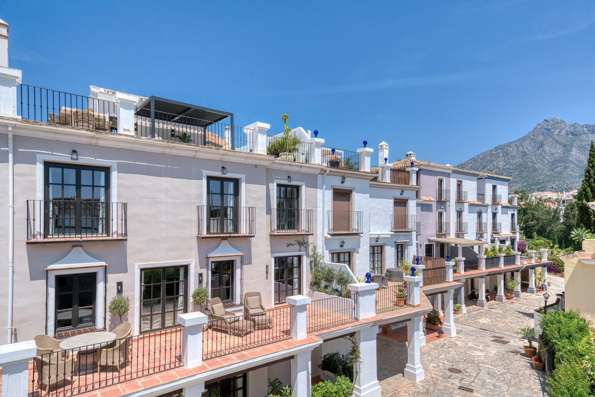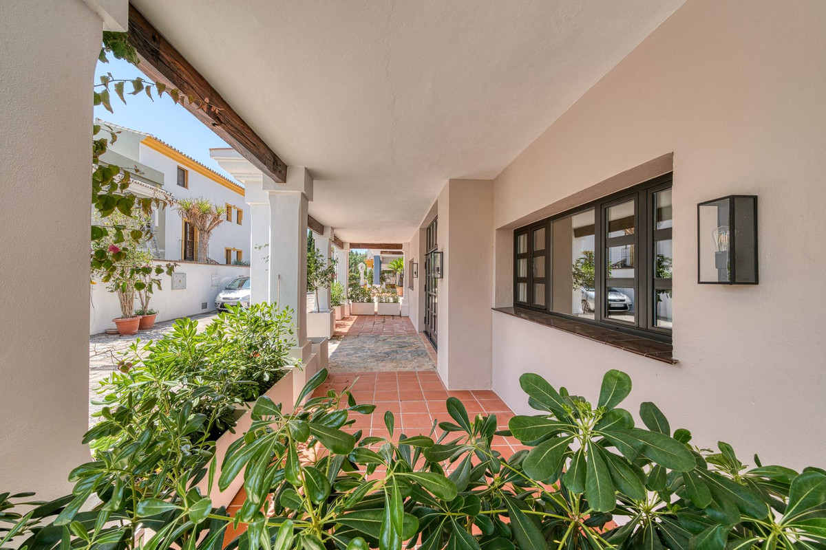Deze prachtige hoekwoning/villa, gelegen in een exclusieve, beveiligde community aan de Golden Mile van Marbella, combineert de essentie van klassieke Andalusische architectuur met een luxueuze, moderne twist. Gelegen in het hart van de prestigieuze Golden Mile van Marbella, biedt het volledige privacy, een tijdloos design en directe toegang tot de meest iconische beachclubs en restaurants van de kust. De besloten, beveiligde community bestaat uit slechts 24 woningen, omgeven door mediterrane tuinen, fonteinen en een prachtig zwembad. Met 24-uurs beveiliging en onderhoud ter plaatse, biedt het de rust van een privé-retraite op slechts een steenworp afstand van het strand en de Paseo Marítimo (1 km, 16 minuten lopen).