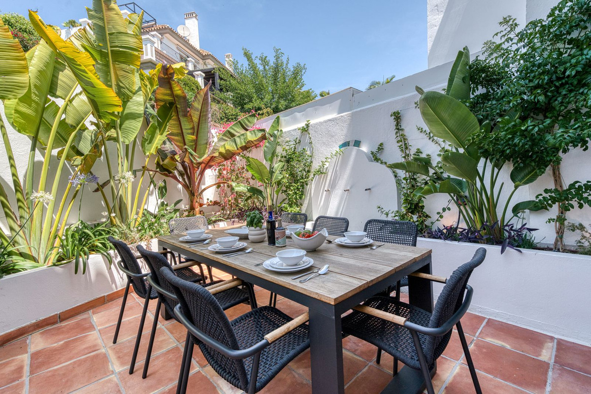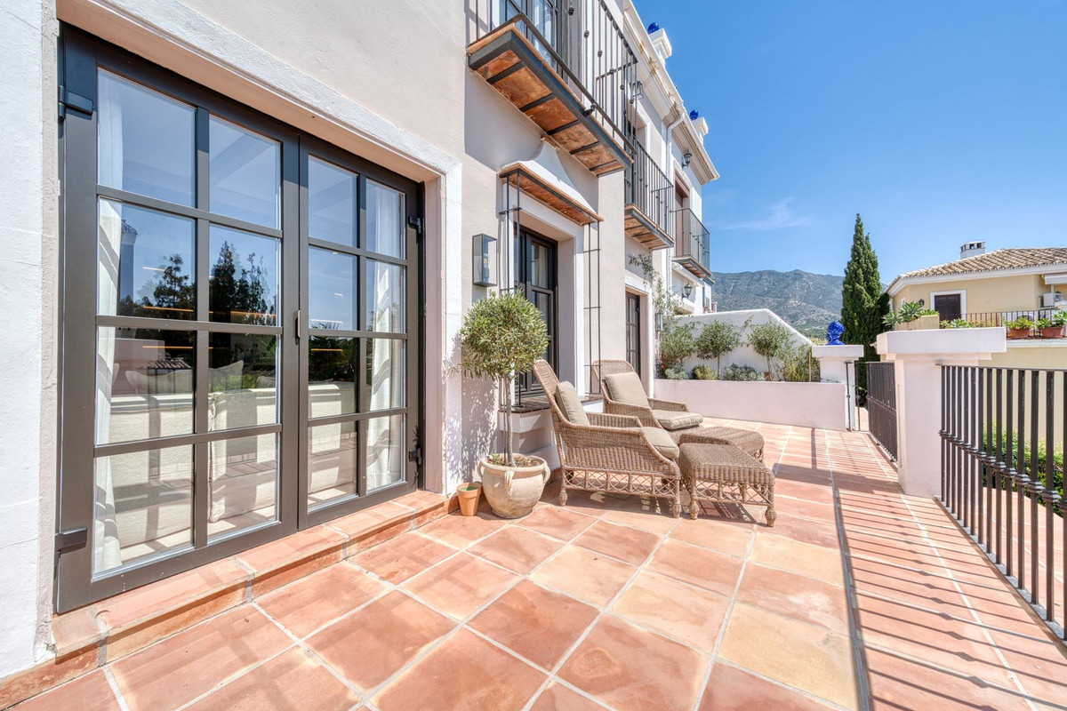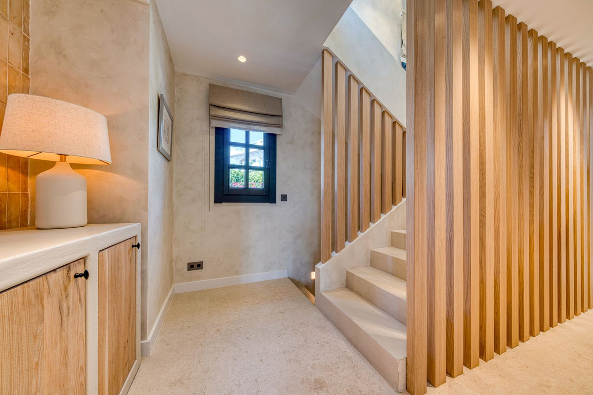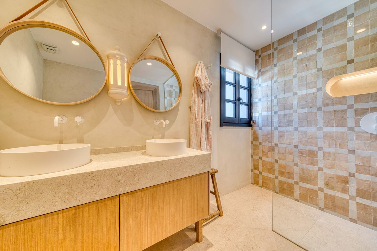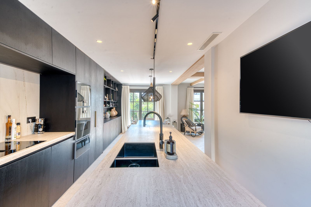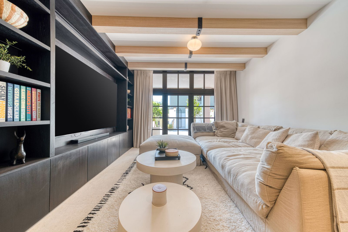 Deze prachtige hoekwoning/villa, gelegen in een exclusieve, beveiligde community aan de Golden Mile van Marbella, combineert de essentie van klassieke Andalusische architectuur met een luxueuze, moderne twist. Gelegen in het hart van de prestigieuze Golden Mile van Marbella, biedt het volledige privacy, een tijdloos design en directe toegang tot de meest iconische beachclubs en restaurants van de kust. De besloten, beveiligde community bestaat uit slechts 24 woningen, omgeven door mediterrane tuinen, fonteinen en een prachtig zwembad. Met 24-uurs beveiliging en onderhoud ter plaatse, biedt het de rust van een privé-retraite op slechts een steenworp afstand van het strand en de Paseo Marítimo (1 km, 16 minuten lopen).