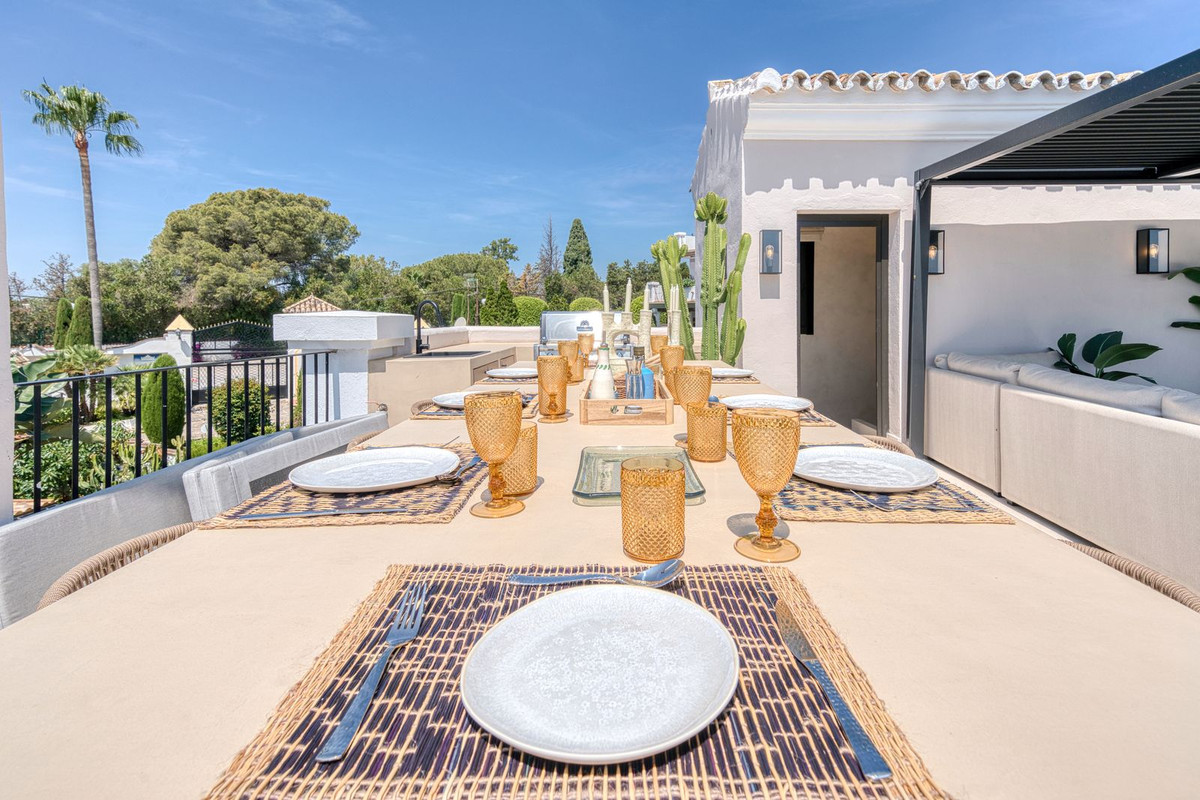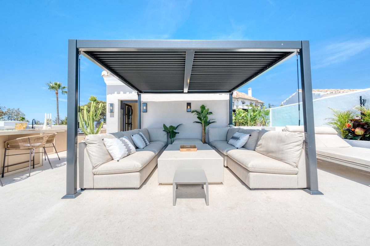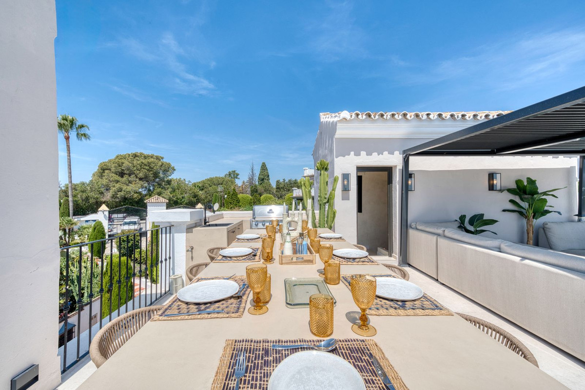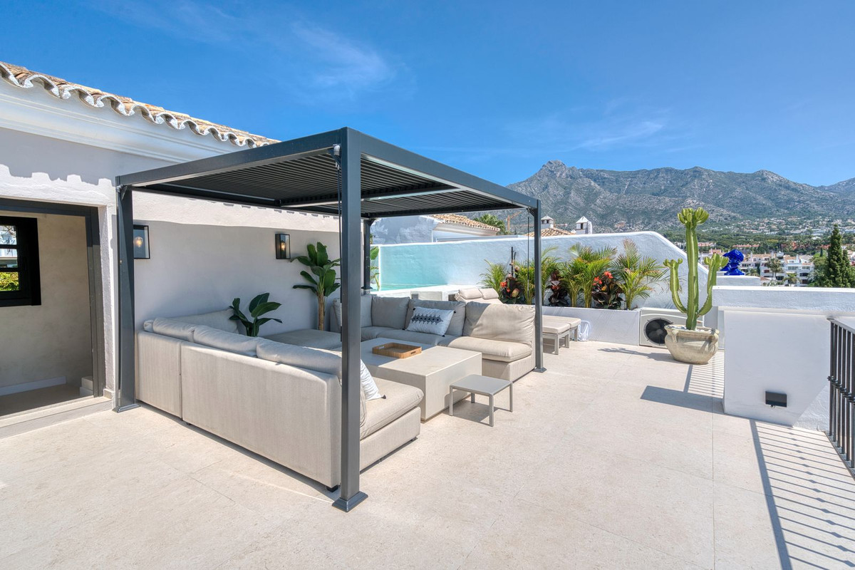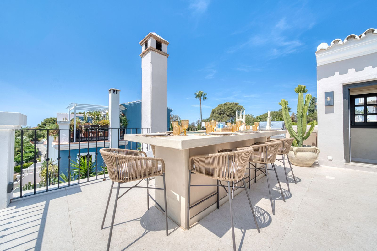 Het dakterras is werkelijk adembenemend, met een panoramisch uitzicht dat zich uitstrekt van La Concha tot de daken van Puente Romano, de Middellandse Zee en op een heldere dag zelfs Gibraltar en Noord-Afrika. Het is ontworpen om het hele jaar door te wonen en beschikt over een verwarmd dompelbad, een barbecue, een eethoek en een schaduwrijke relaxlounge, die het beste van Marbella's binnen- en buitenleven combineert. De woning wordt ongemeubileerd aangeboden, maar de verkoper accepteert een bod indien iemand de meubels bij de koop wil betrekken.