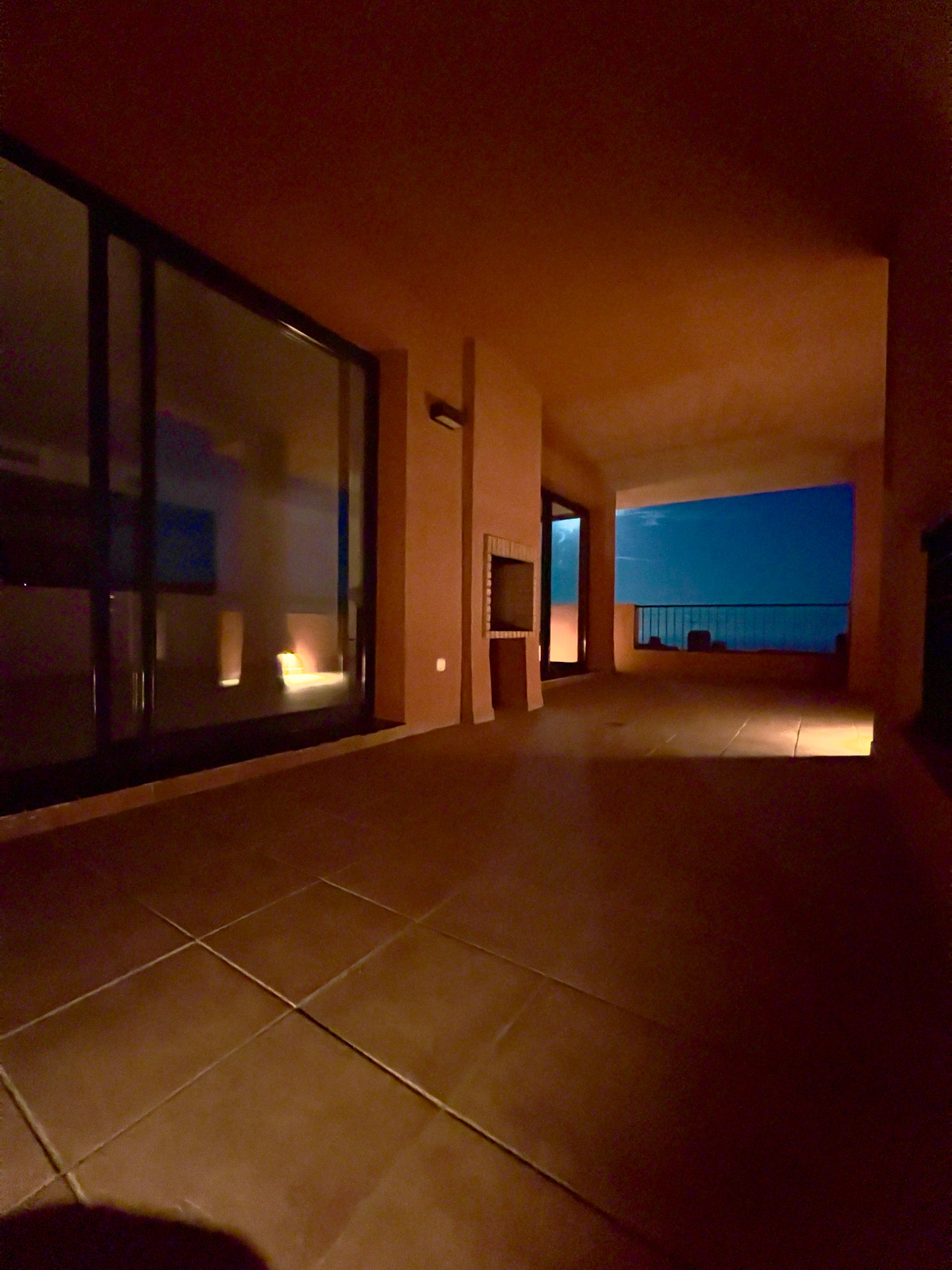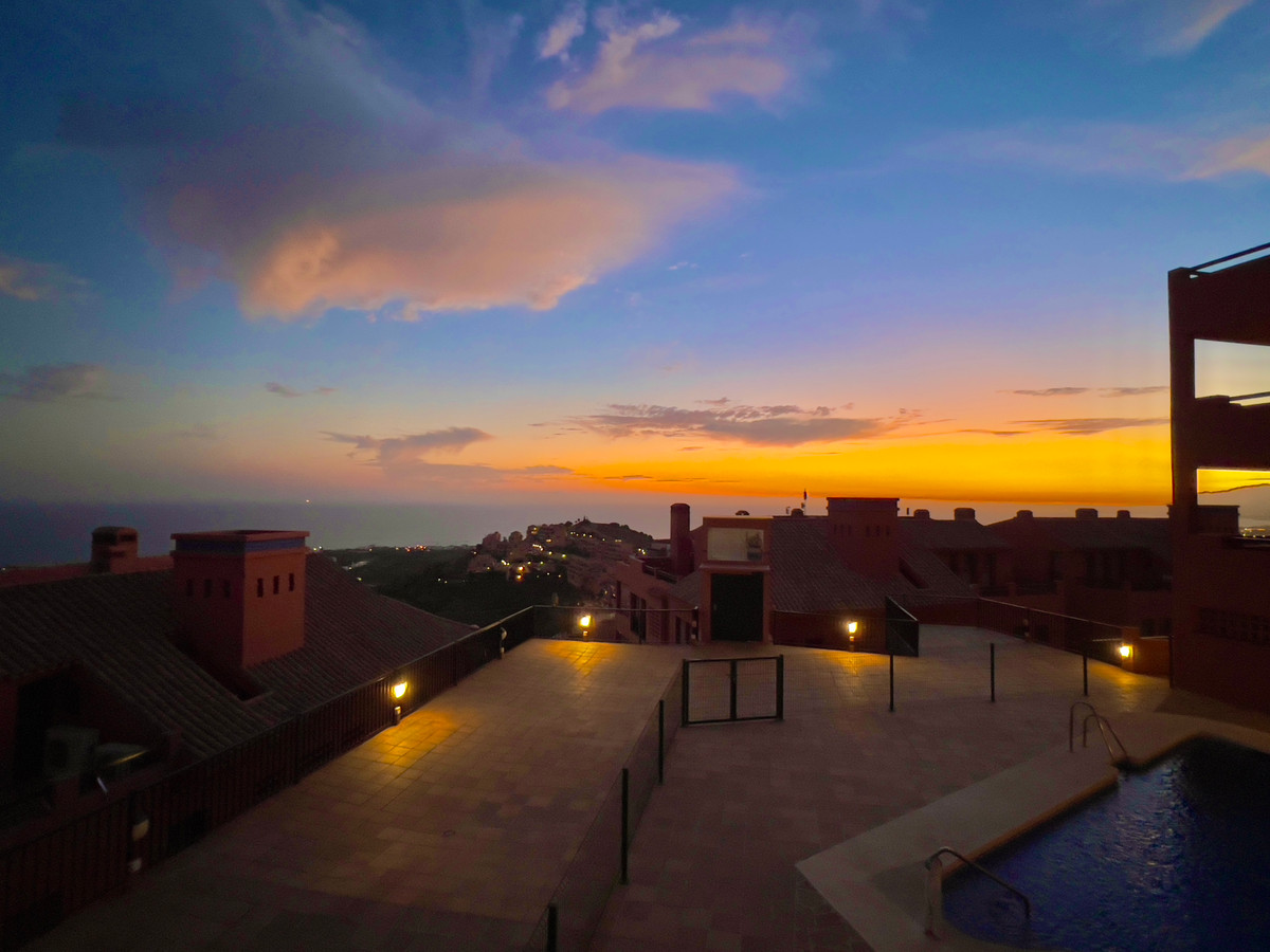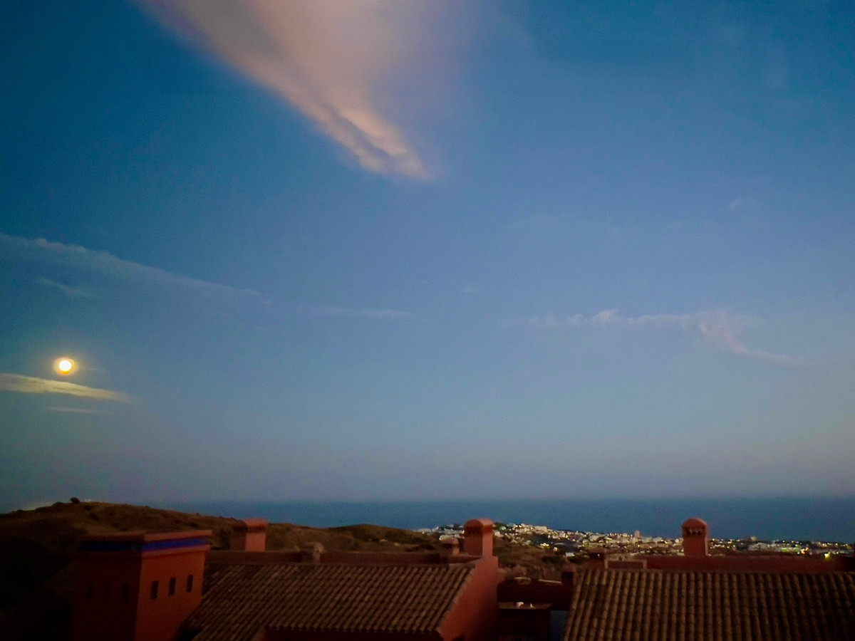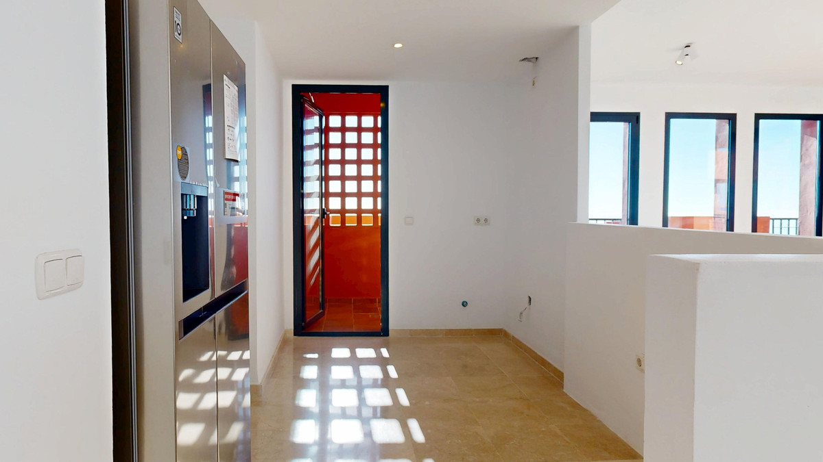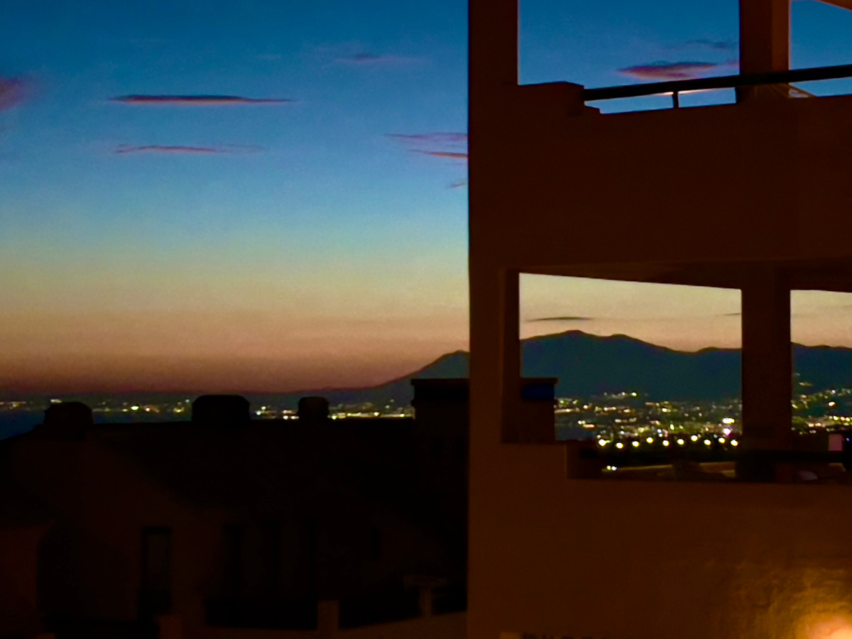 Het hart van het huis is de ruime woon-/eetkamer met open haard en een open keuken, ontworpen om optimaal te genieten. Natuurlijk licht stroomt door elke hoek en sluit naadloos aan op het spectaculaire uitzicht op zee, Gibraltar en Afrika.