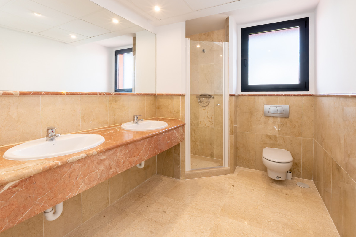 De twee royale slaapkamers zijn ontworpen voor absolute ontspanning: de hoofdslaapkamer beschikt over een en-suite badkamer en kleedruimte, terwijl de tweede slaapkamer ook een complete badkamer heeft. Dit alles wordt omlijst door marmeren vloeren, hoogwaardige afwerkingen en inbouwkasten die zowel orde als elegantie uitstralen.