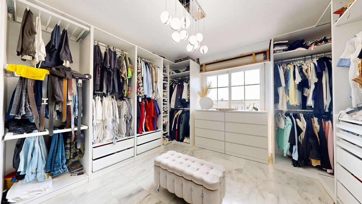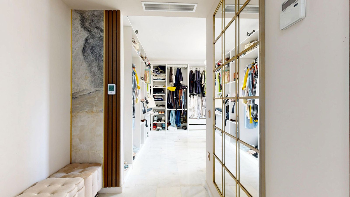 De master suite valt op door de ruime inloopkast, de en-suite badkamer en het privéterras op het zuidoosten, met een aangenaam uitzicht en uitzonderlijk veel lichtinval.