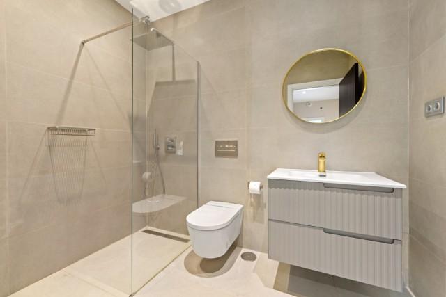 De villa combineert architectonische elegantie met functionaliteit en biedt een ruime, open indeling met een grote woonkamer, een verfijnde eetkamer en een volledig uitgeruste designkeuken. Glazen deuren van vloer tot plafond vervagen de grens tussen binnen- en buitenruimtes, vullen de woning met natuurlijk licht en bieden naadloze toegang tot de terrassen en tuinen.