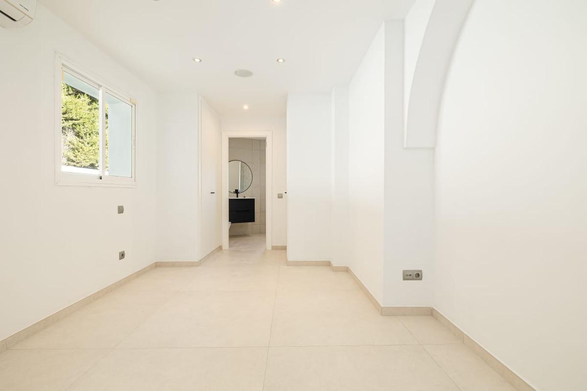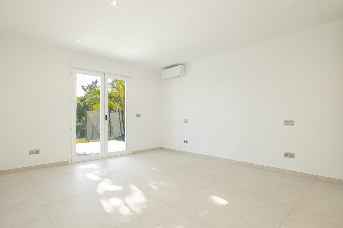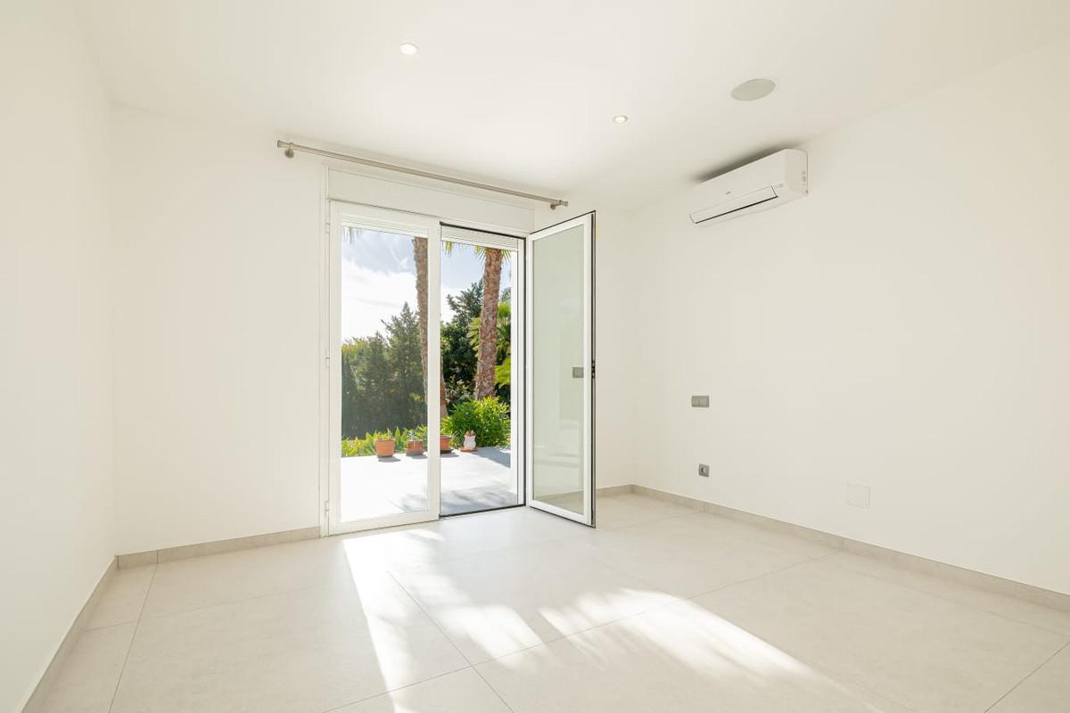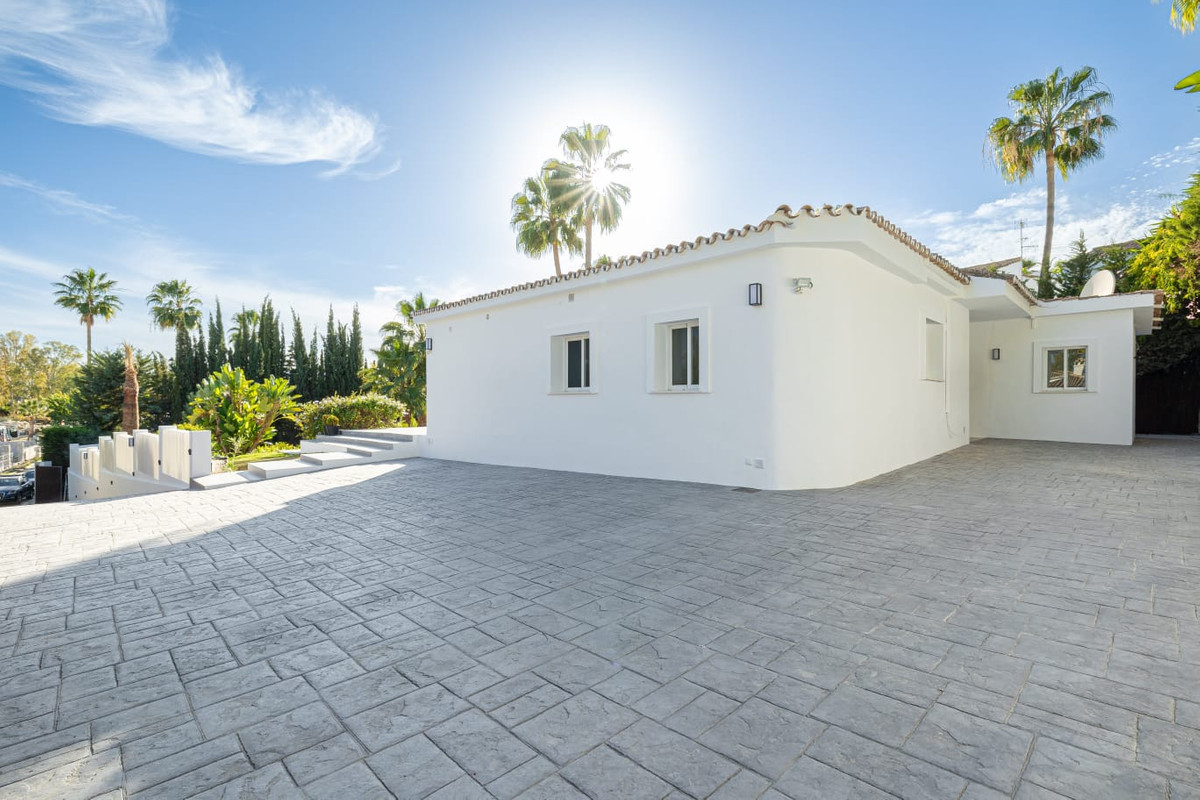 Deze prachtige, onlangs gerenoveerde villa is gelegen op een ruim perceel in een zeer rustige en privéwijk van Estepona. Op slechts een klein eindje rijden vindt u alles wat u nodig heeft: prachtige stranden, wandelpaden langs de kust en alle pittoreske Spaanse stadjes aan de Costa del Sol. Dankzij de zuidoriëntatie geniet de villa de hele dag van veel natuurlijk licht en biedt het ontwerp een prachtig uitzicht op het zwembad, de omgeving en de tropische tuinen.
