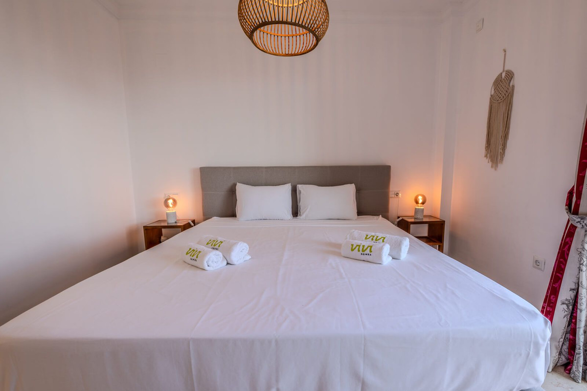 De hoofdslaapkamer is ruim en elegant, met directe toegang tot het terras, een grote inloopkast en een luxe en-suite badkamer met een inloopdouche en een bad met een extra douche erboven. De twee andere slaapkamers zijn ruim van formaat, hebben inbouwkasten en een aangrenzende badkamer met een grote inloopdouche.