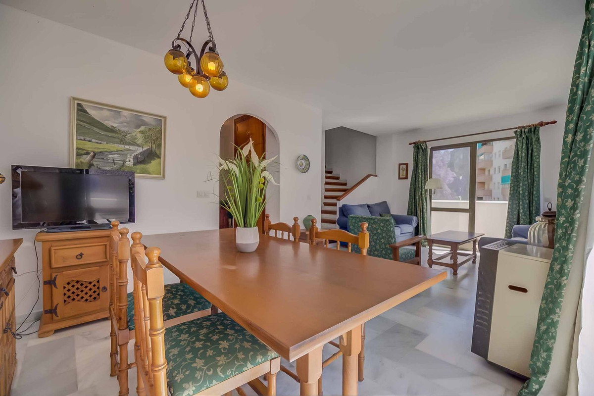 Hoekduplex te koop in de prestigieuze urbanisatie Puebla Lucía, gelegen in het hart van Fuengirola. Dankzij de onovertroffen locatie onderscheidt deze exclusieve urbanisatie zich door rust, Andalusische charme en de nabijheid van alle voorzieningen.