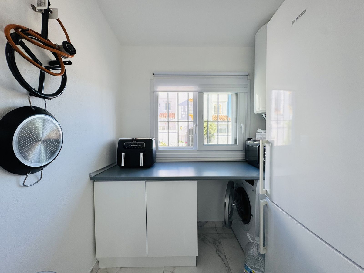 Deze ruime woning met drie verdiepingen, gelegen in de altijd populaire urbanisatie Marina de Casares, biedt de perfecte mix van comfort, stijl en gemak. Gelegen in een rustige fase van de ontwikkeling, genieten bewoners van exclusieve toegang tot een prachtig gemeenschappelijk zwembad en aangelegde tuinen, met lage servicekosten van slechts € 90 per maand.