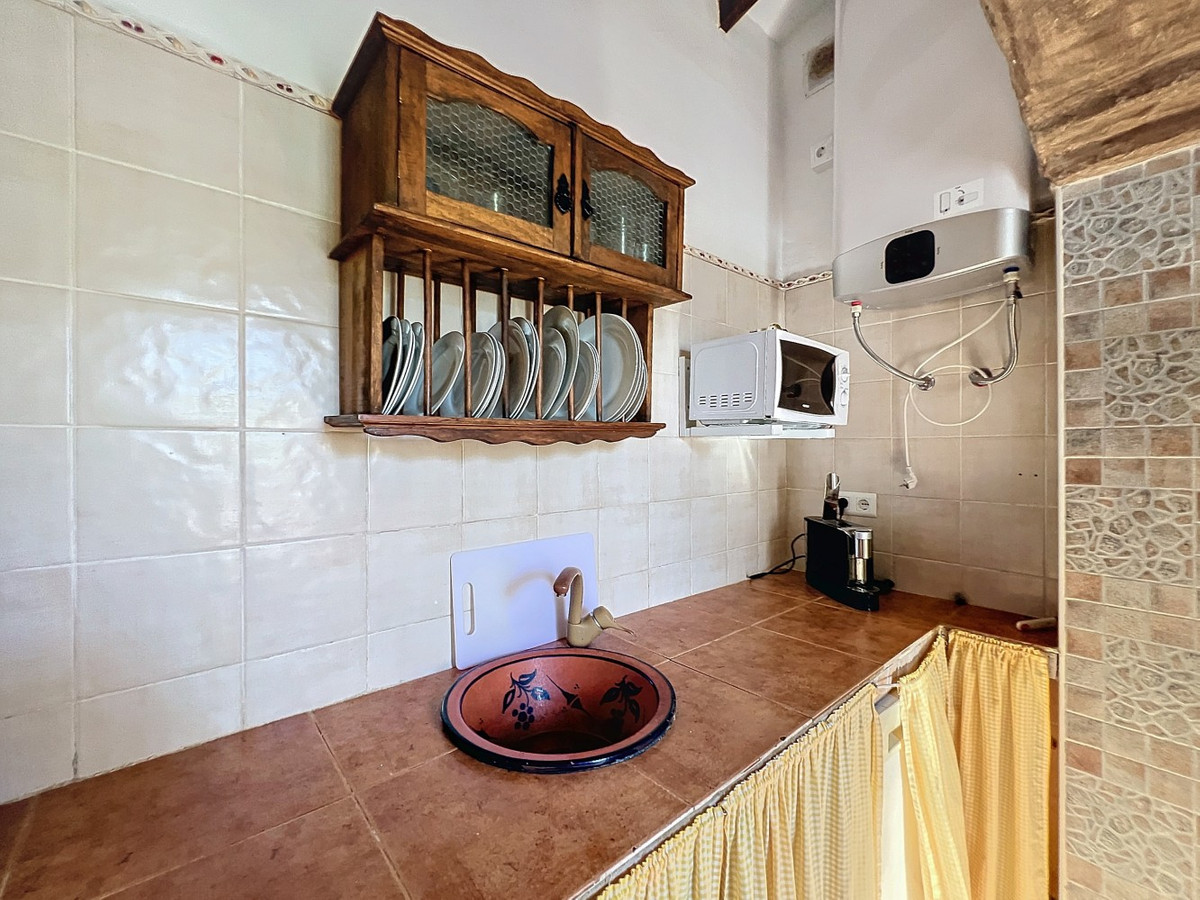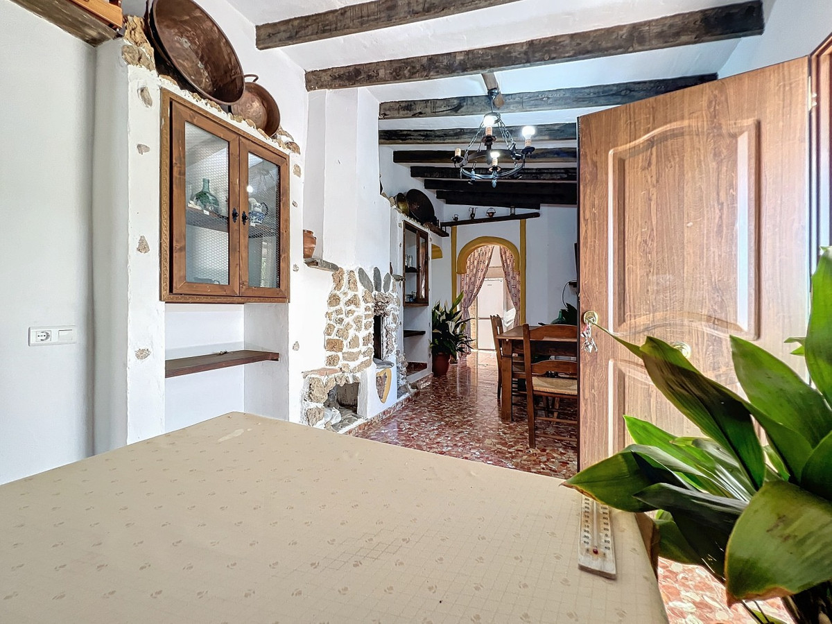 Charmante finca in Sedella, aan de voet van de hellingen van La Maroma. Gelegen op slechts 10 minuten van het pittoreske dorpje Sedella, aan de voet van de imposante hellingen van La Maroma, de hoogste berg in de provincie Málaga, ligt deze spectaculaire woning. Volledig geregistreerd, gelegaliseerd en met een verhuurvergunning, biedt het een uitstekende mogelijkheid voor zowel residentieel gebruik als als investering. De woning beschikt tevens over een DAFO-certificaat, wat garandeert dat deze voldoet aan de lokale bouwvoorschriften. Het volledig omheinde perceel beslaat 1.900 m² en biedt een verscheidenheid aan fruitbomen, een kippenhok en voldoende ruimte om een moestuin aan te leggen of meer fruitbomen toe te voegen. Aan de ene kant van het huis vindt u een verfrissend zwembad, naast een barbecueplek en een traditionele Arabische oven, perfect om buiten te eten met familie en vrienden. Het huis bestaat uit drie ruime slaapkamers, een woon-/eetkamer met open haard, ideaal voor gezellige winteravonden, een volledig uitgeruste keuken en een badkamer met douche. Aan de voorzijde van het huis nodigt een overdekt terras u uit om te ontspannen terwijl u geniet van de rust en het prachtige uitzicht op het platteland. De woning is voorzien van airconditioning en de houten balkenplafonds geven het ontwerp een traditionele en gastvrije touch. Bovendien is de woning aangesloten op de gemeentelijke waterleiding, wat een probleemloze watervoorziening garandeert. We zijn verheugd u deze prachtige woning te mogen presenteren, zowel persoonlijk als via een virtuele bezichtiging. Want deze plek is uniek, net als onze Axarquía. In Andalusië. Aan de Costa del Sol. Hier, aan de zonnige kant van het leven...