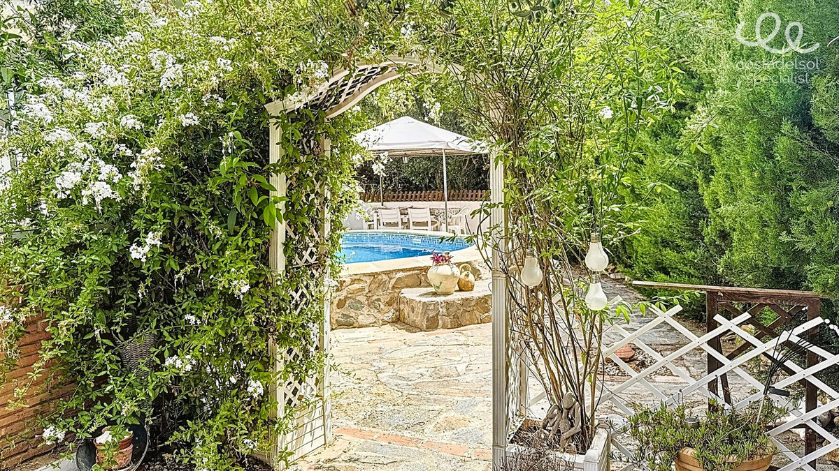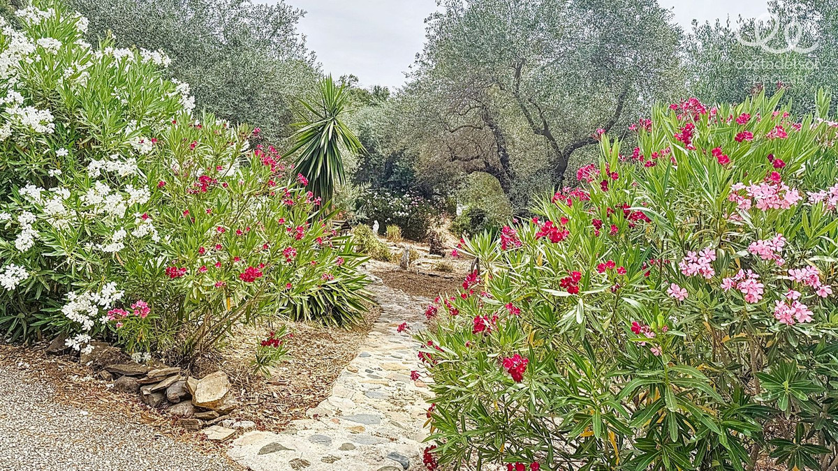 Buiten vindt u een privézwembad omgeven door diverse schaduwrijke zitjes en een barbecueplek. De volgroeide tuin is gevuld met weelderige mediterrane beplanting en het vlakke terrein leent zich perfect voor bijvoorbeeld camperparking. Een brede oprit biedt parkeergelegenheid voor meerdere voertuigen.