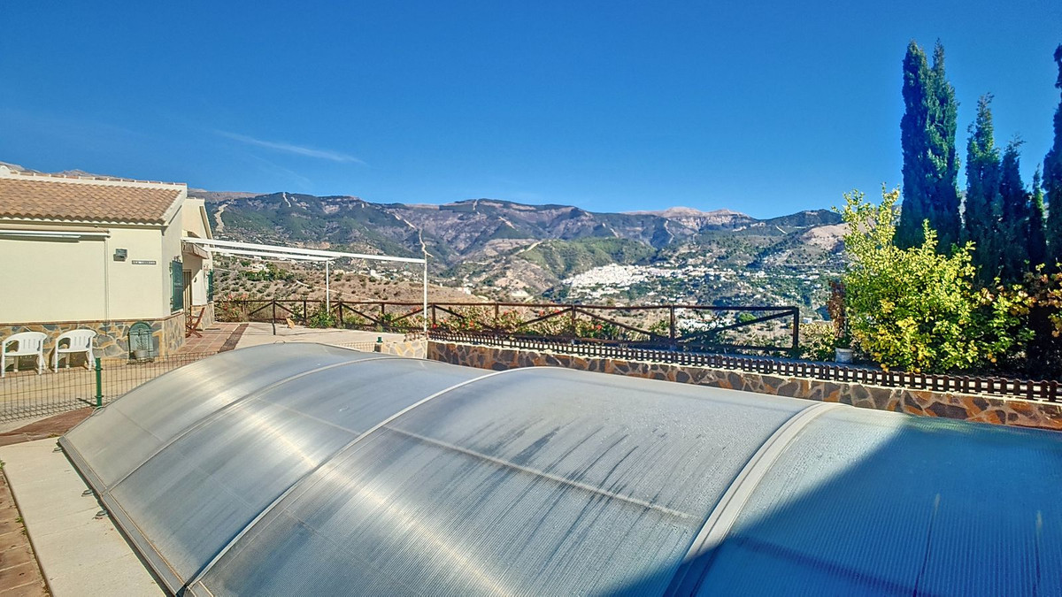 De woning is bereikbaar via een onverharde weg die de rustige, landelijke sfeer versterkt en ligt op een volledig omheind perceel van 7.000 m², wat privacy en veiligheid garandeert. Het terrein beschikt over een bloeiende boomgaard met olijf-, avocado-, mandarijn-, sinaasappel- en mangobomen. Een eigen, geregistreerde waterput (140 meter diep) levert water aan een tank van 10.000 liter, met een extra tank van 15.000 liter indien nodig.