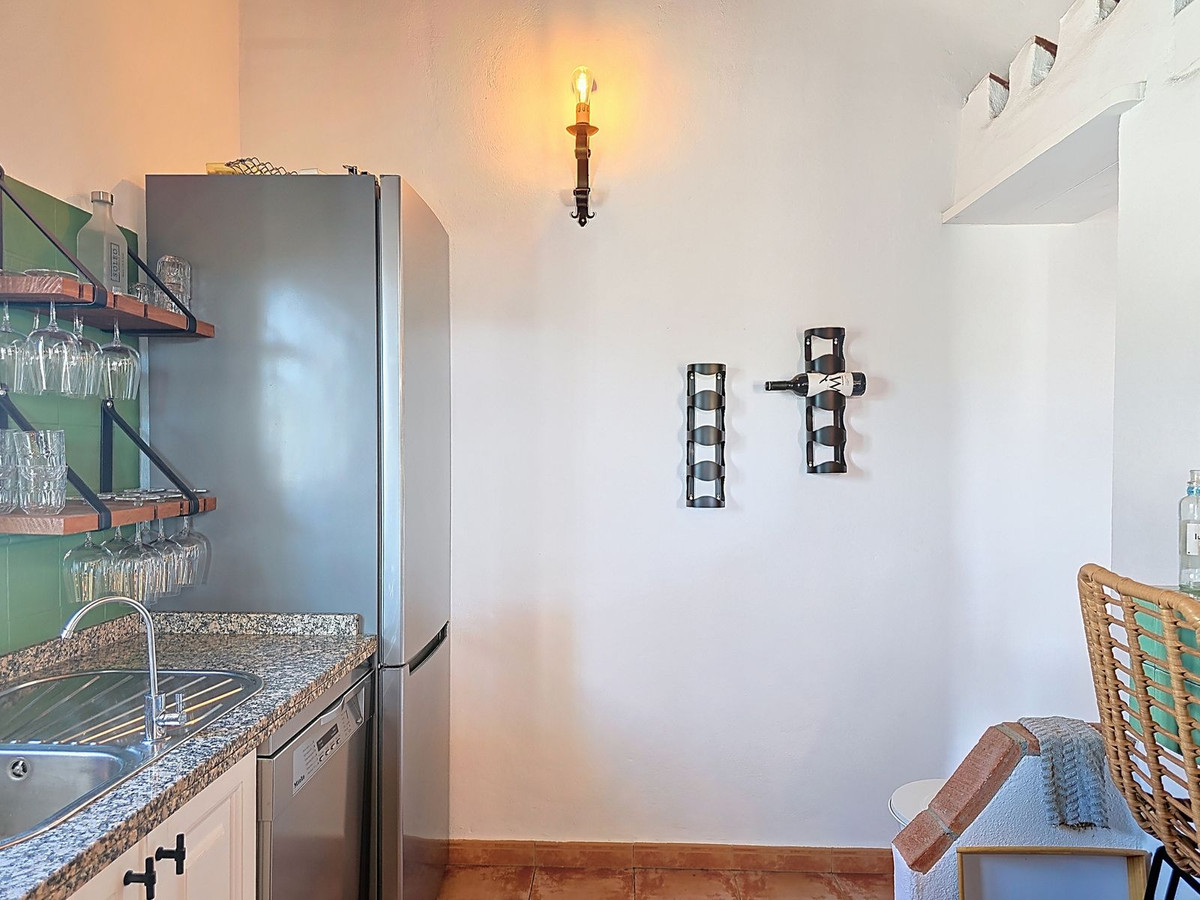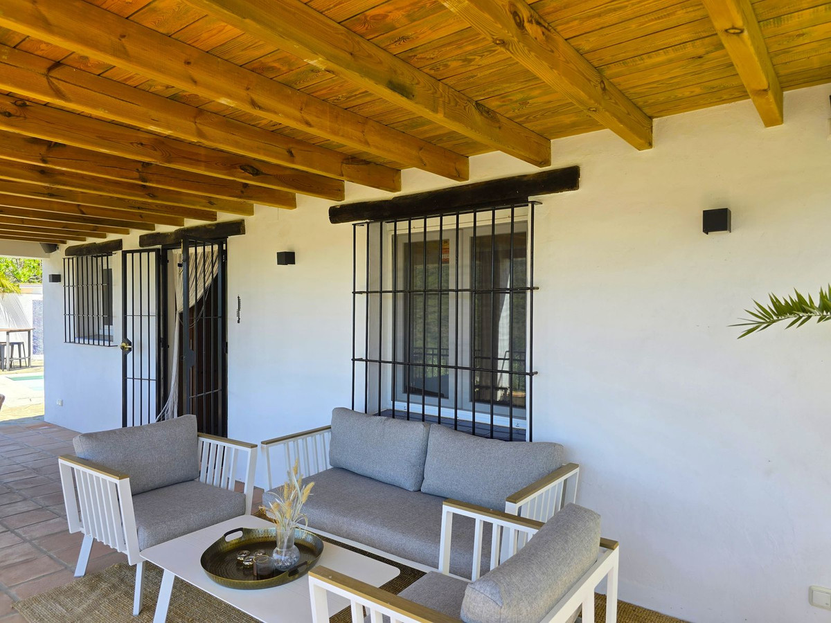 Zodra u naar buiten stapt, wordt de charme van de woning nog verder versterkt. Een overdekte veranda aan de voorzijde van het huis geeft een gastvrije eerste indruk en is een ideale plek om buiten te eten en te loungen. Deze ruimte is voorzien van een ingebouwde barbecue en diverse zitjes, een heerlijke plek om te ontspannen in de schaduw terwijl u geniet van het spectaculaire uitzicht en de rustige omgeving.