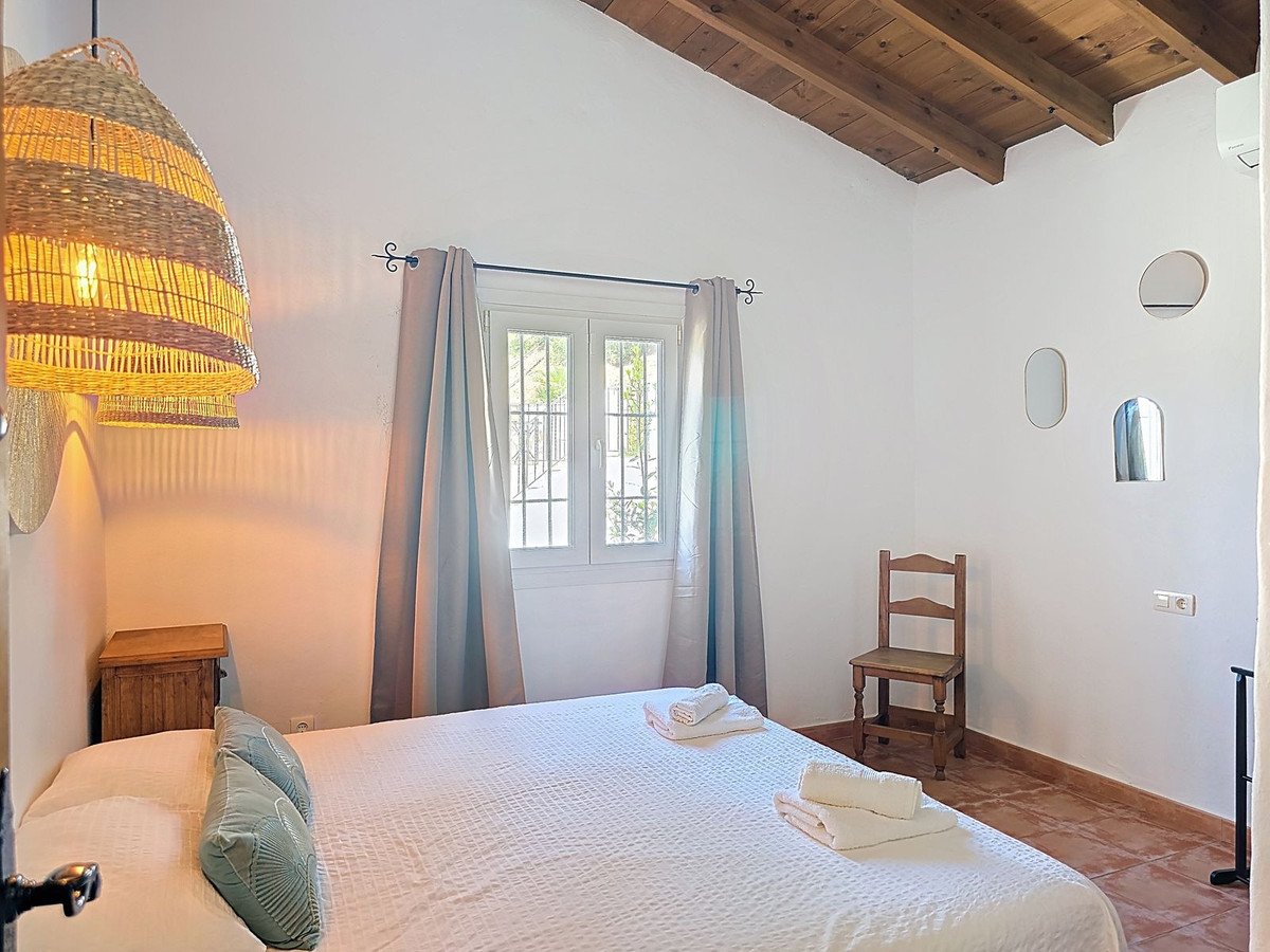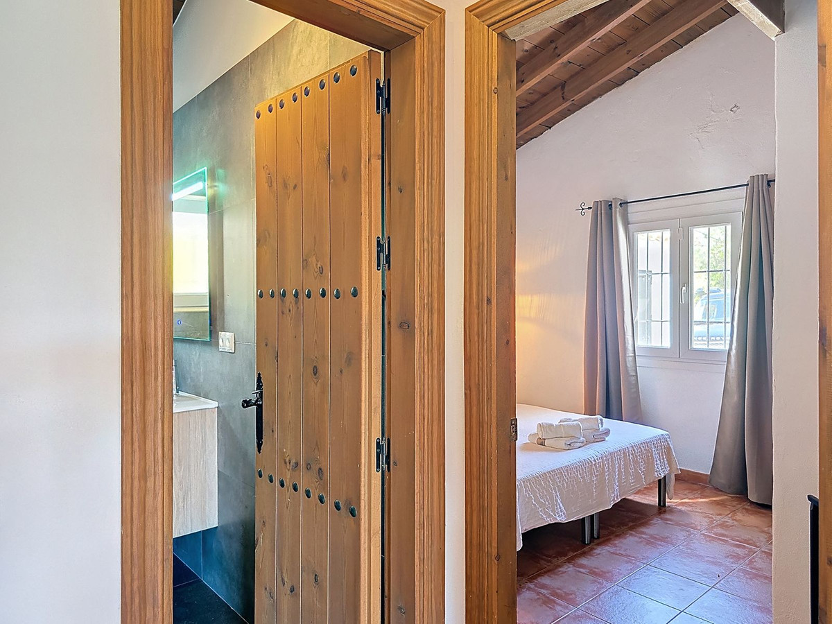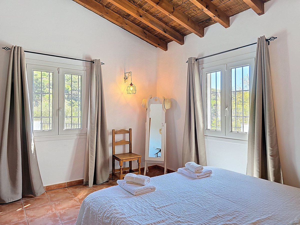 De woning beschikt over drie ruime tweepersoonsslaapkamers, elk met ingebouwde opbergruimte en uitzicht op het omliggende landschap. Eén van de slaapkamers beschikt over een eigen badkamer, wat zorgt voor extra privacy en gemak. Een tweede, ruime badkamer is afgewerkt met traditionele Andalusische tegels en stijlvolle armaturen, en biedt een lichte en functionele ruimte voor zowel bewoners als gasten.