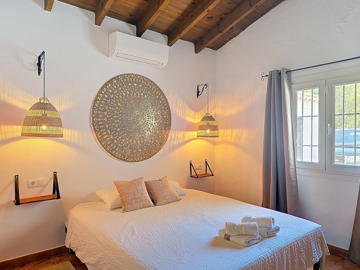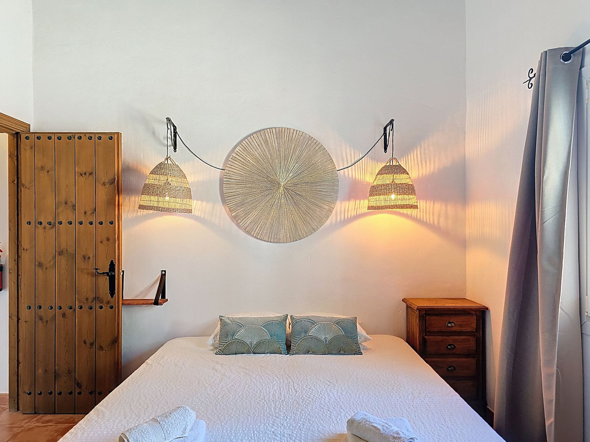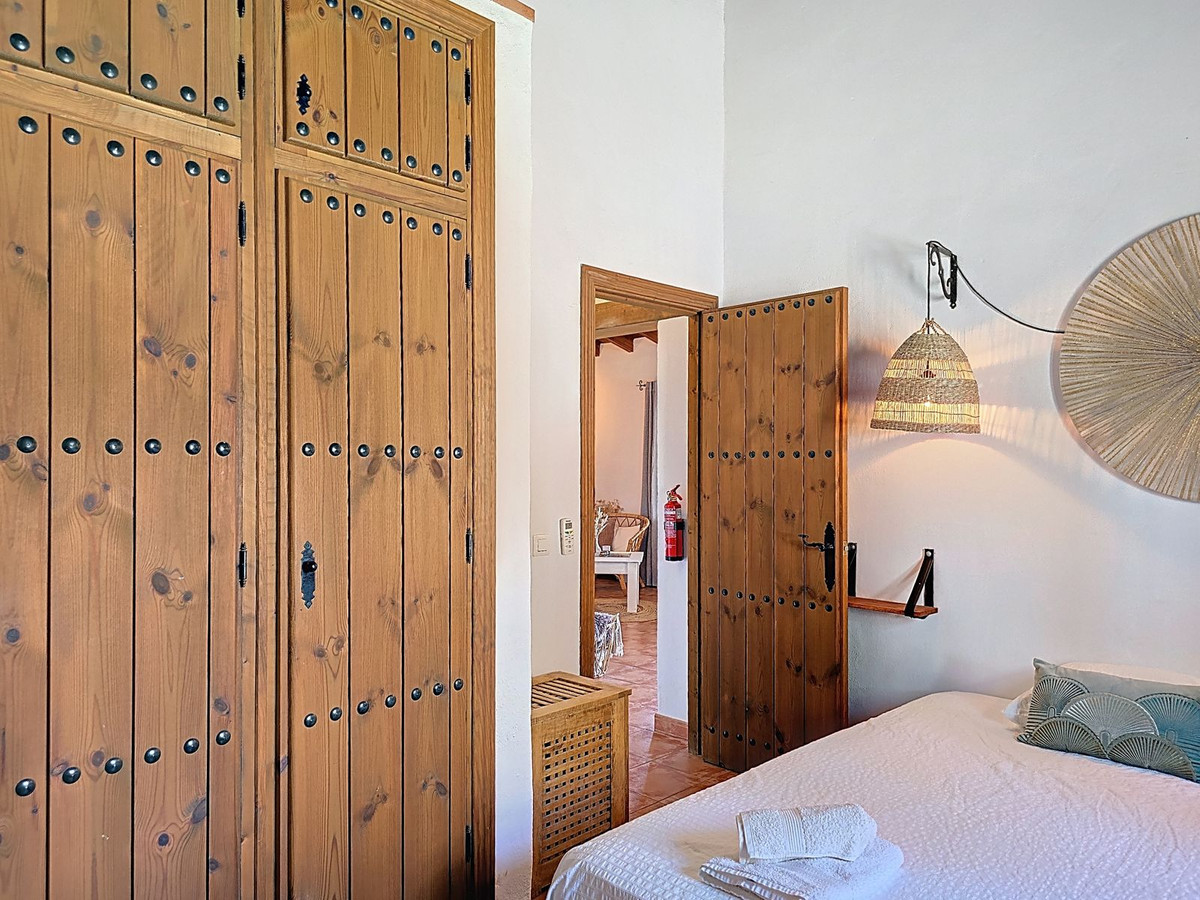 De woning beschikt over drie ruime tweepersoonsslaapkamers, elk met ingebouwde opbergruimte en uitzicht op het omliggende landschap. Eén van de slaapkamers beschikt over een eigen badkamer, wat zorgt voor extra privacy en gemak. Een tweede, ruime badkamer is afgewerkt met traditionele Andalusische tegels en stijlvolle armaturen, en biedt een lichte en functionele ruimte voor zowel bewoners als gasten.