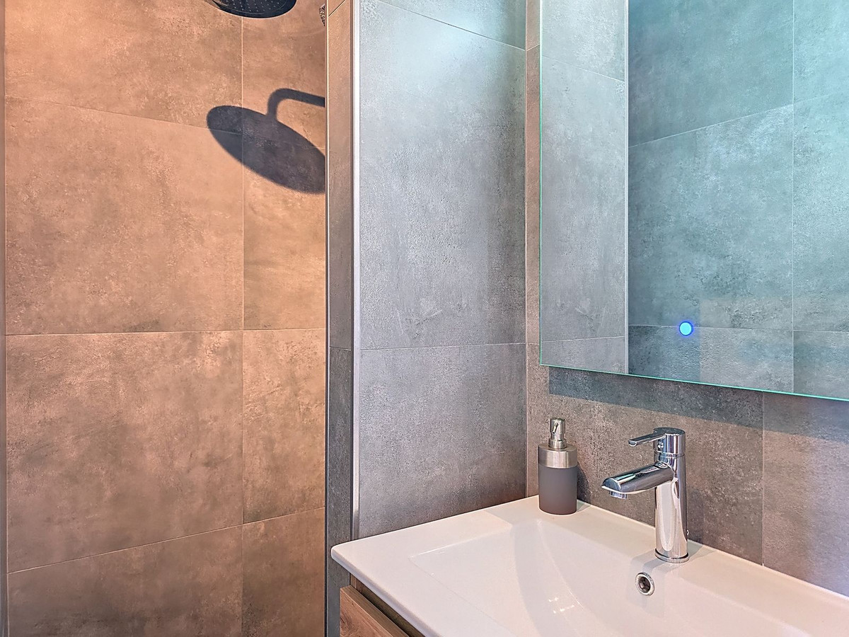 Vanaf de veranda leiden een paar treden naar het prachtig ontworpen zwembad, omzoomd door natuurstenen bestrating en zonnige terrassen. Of u nu zwemt, zonnebaadt of geniet van een rustig moment met een boek, deze ruimte is een waar hoogtepunt van de accommodatie en biedt een heerlijke plek om te ontspannen of gasten te ontvangen.