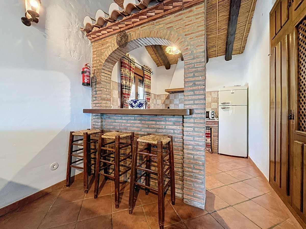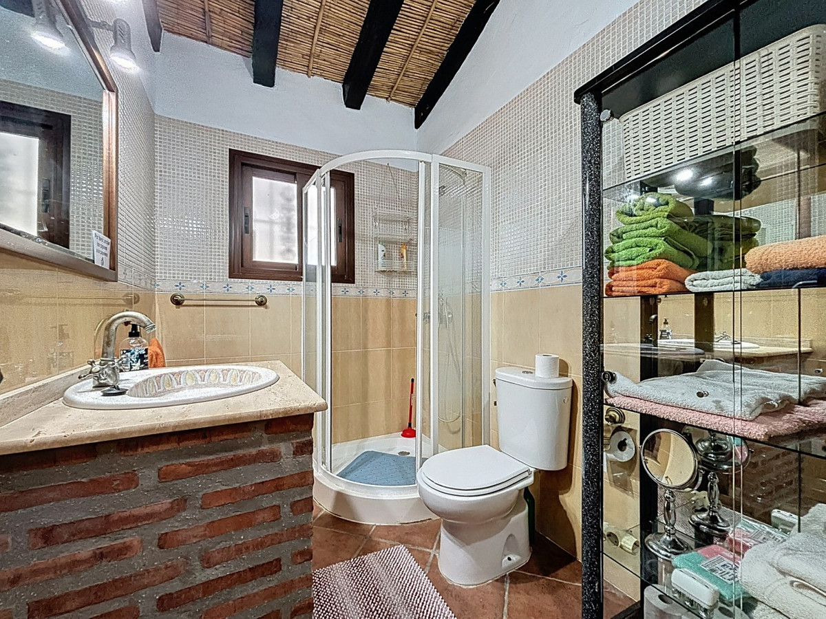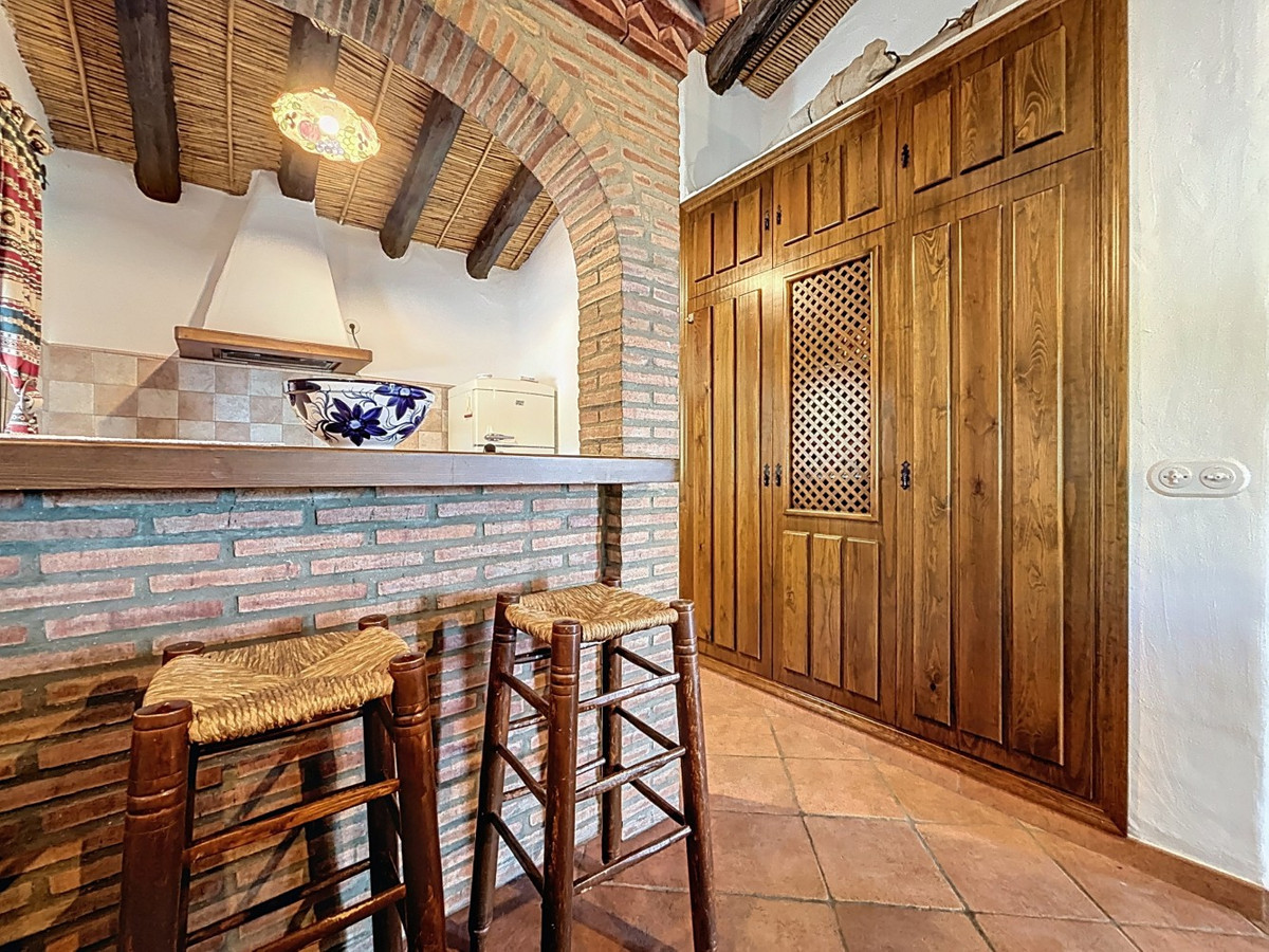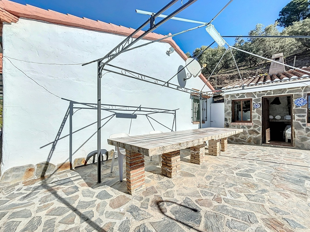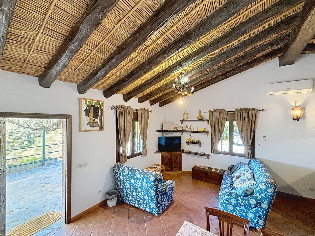 Genesteld in de glooiende heuvels onder Cómpeta, met een weids uitzicht op de omliggende bergen, biedt dit charmante landhuis in traditionele Andalusische stijl een oase van rust voor natuurliefhebbers en rustzoekers. Het gelijkvloerse huis beschikt over een gezellige woon- en eetkamer met een aangrenzende, typisch Andalusische keuken. Drie slaapkamers, een badkamer en een apart gastentoilet bieden comfortabele ruimte voor familie of vrienden. Vloerverwarming en airconditioning in de hoofdvertrekken zorgen het hele jaar door voor comfort, zowel op warme zomerdagen als op koelere winternachten. Buiten nodigt een ruim overdekt terras u uit om te ontspannen, terwijl het verfrissende zwembad, het extra gastentoilet en een kleine, ingebouwde zomerkeuken de perfecte setting creëren om buiten te leven en gasten te ontvangen. De woning is gelegen op een natuurlijk perceel met diverse fruitbomen, een prachtig kader voor het leven onder de zuidelijke zon. Een authentieke woning vol karakter en modern comfort, perfect als vakantieverblijf of permanente bewoning in een van de meest pittoreske regio's van Andalusië. We zijn verheugd u binnenkort deze droomwoning te kunnen presenteren, persoonlijk of via een virtuele bezichtiging. Want deze wereld is uniek - net als onze Axarquía. In Andalusië. Aan de Costa del Sol. Hier, aan de zonnige kant van het leven...